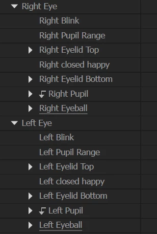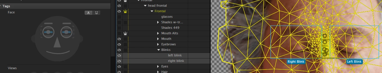 If I have Track Item Behaviors/Face/Blink Eyes Together deselected both of my eyes blink, but, of course, not together. And it really looks creepy. But if I select it, only the left one blinks. I have been searching the layers and tags like crazy and I just can't see anything that is set up differently between left and right.