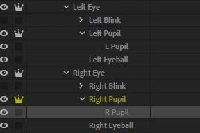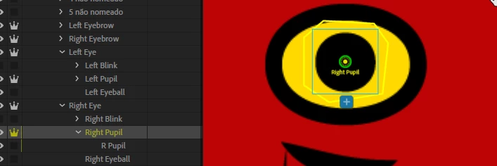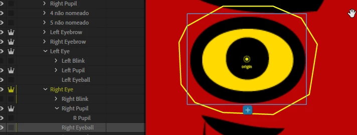 2) An extra right pupil was placed at the position of the nose.