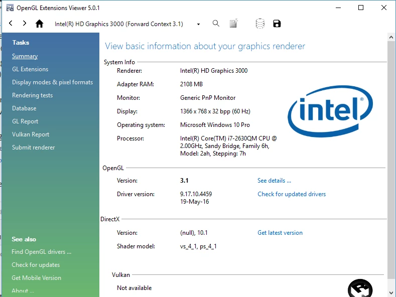 Renderer: Intel(R) HD Graphics 3000