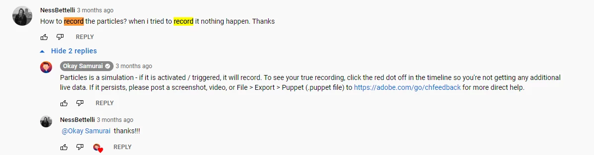 I'm trying to record confetti as particles, it shows up fine while recording, but then it isn't saved.