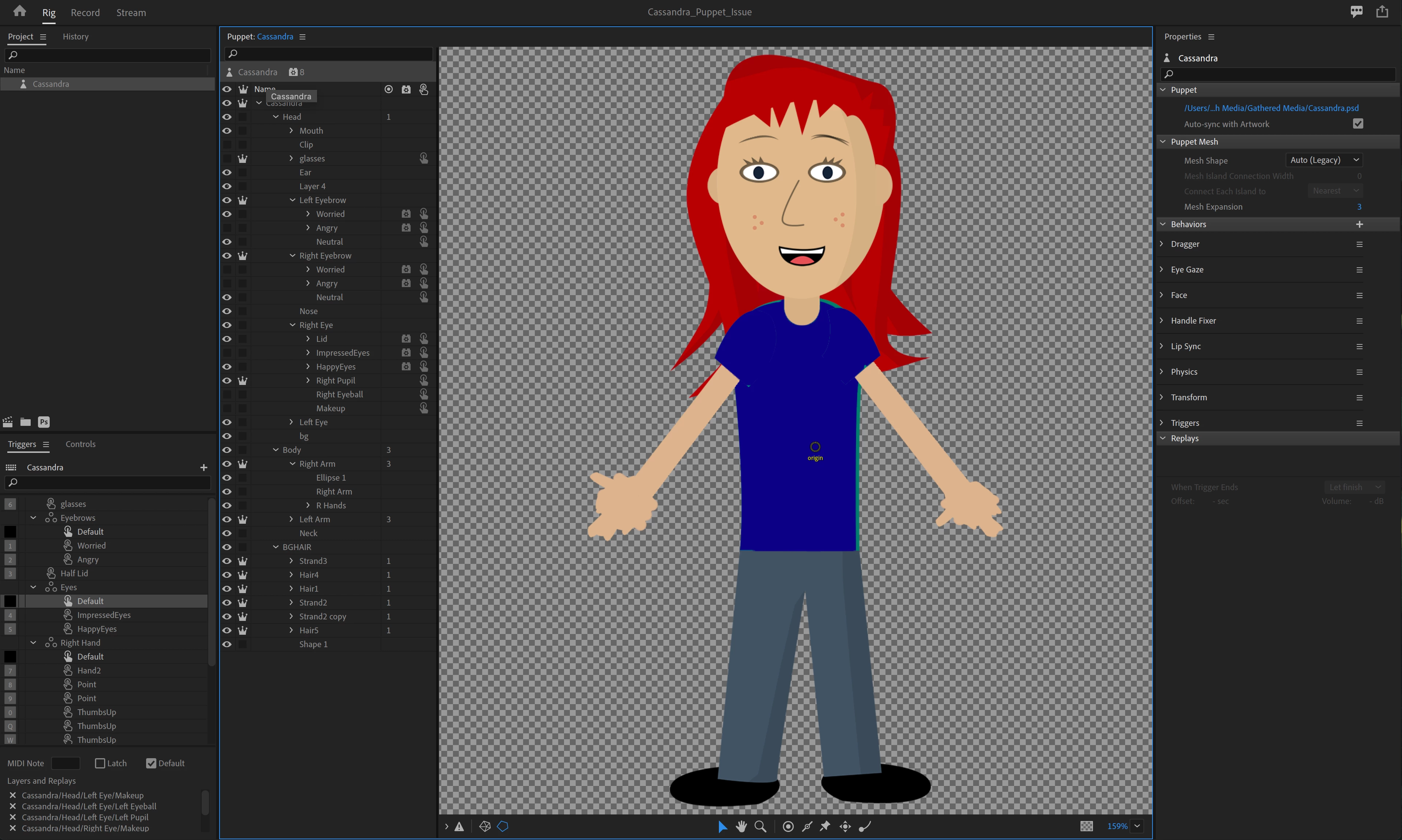 I attached the CA file here. I'd appreciate any expertise in resolving this issue. My changed version of the puppet should be showing in Rig Mode: eyes aren't open as wide, navy blue shirt, etc.
