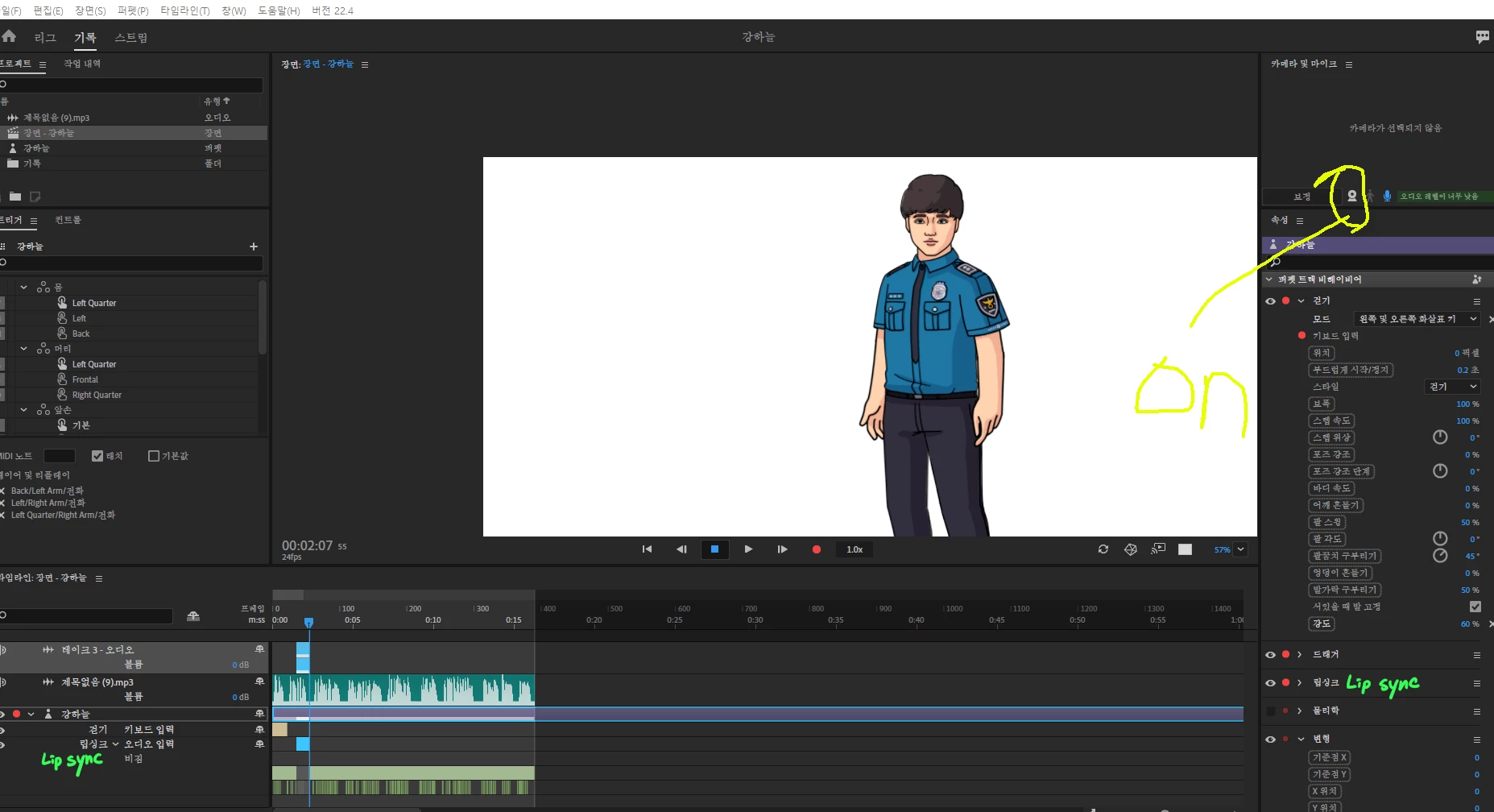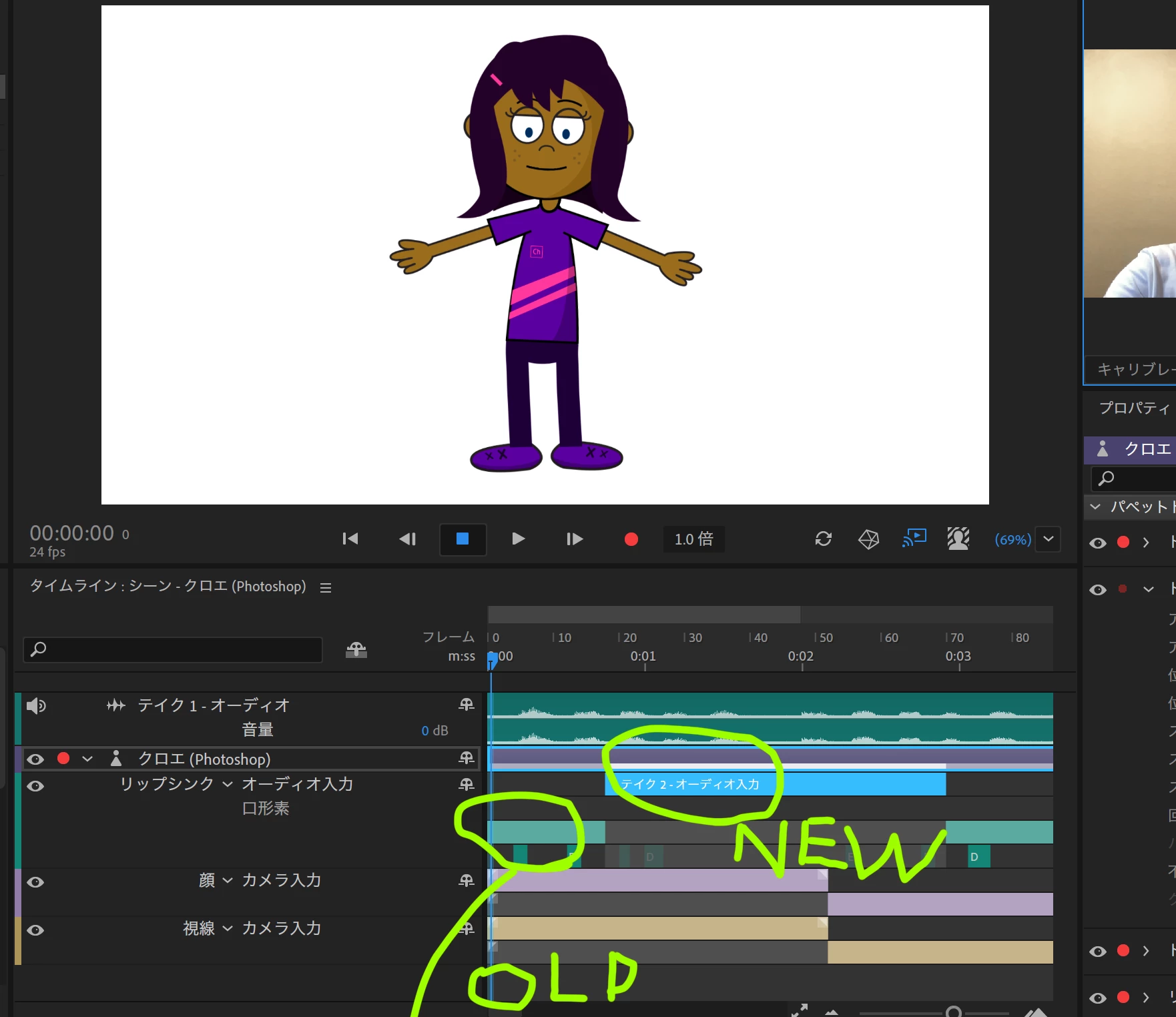 all previously recorded records were played nomally... but suddenly, the mouth doesn't move(to my co-worker) or the character stays still(to me) during the recording.
