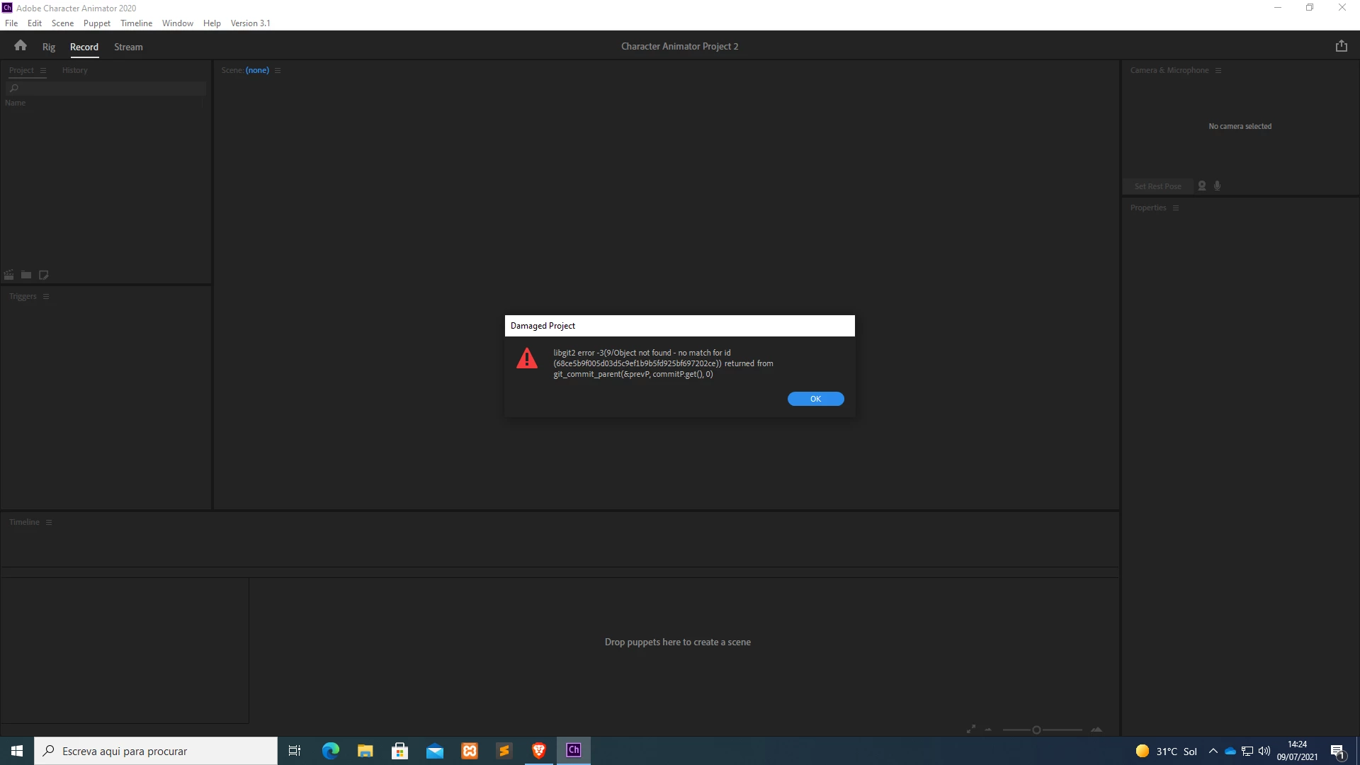 I need help because i lost all animation. When i opened the Ch file, it showed project damaged message and object not found, no match for id. When i resarted it, it showed nothing and empty of the project.