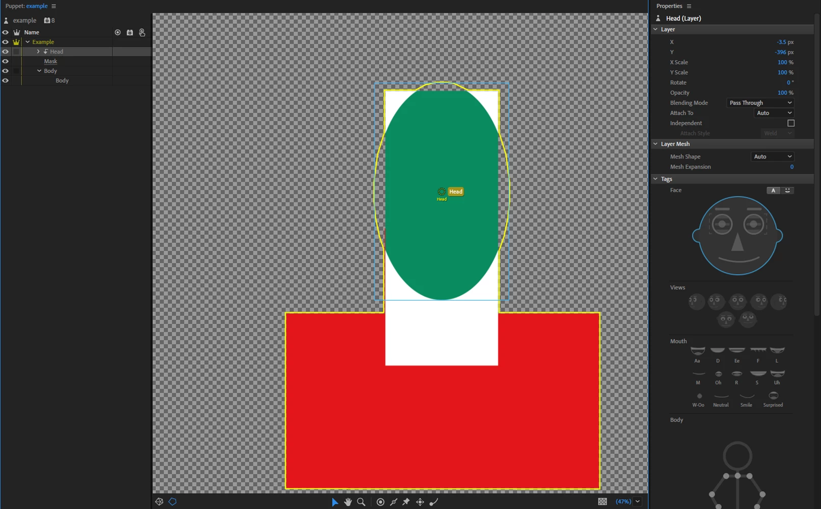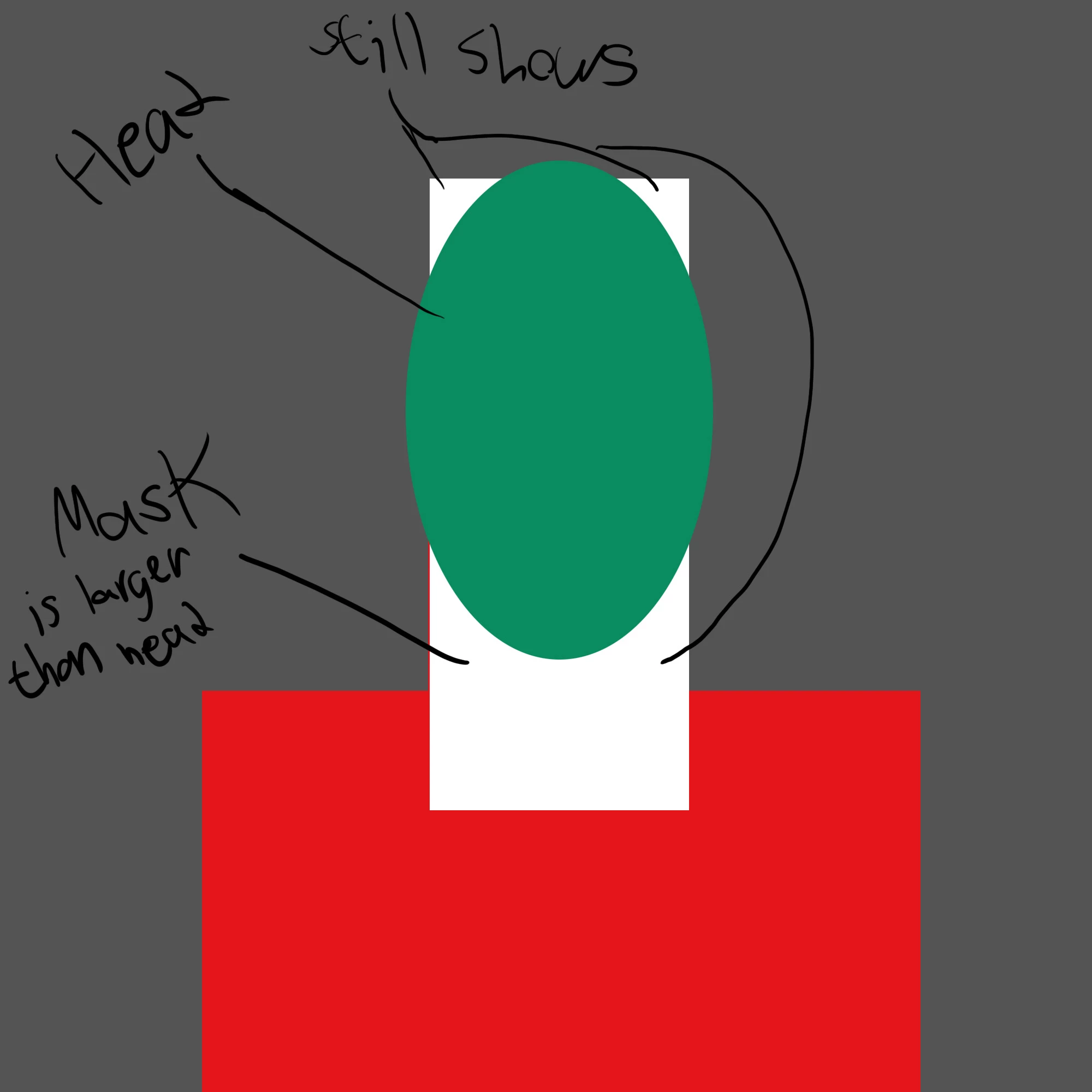 Confused? Try it yourself. I'll use geometric shapes to make it easy. Make a puppet, make the head a (color) circle, make a white mask under the head a square, larger than the circle. Make a square body. Rig it up and look in the record, you still see the mask as you look around. Now try to hide the mask, if you figure out how, please tell me.