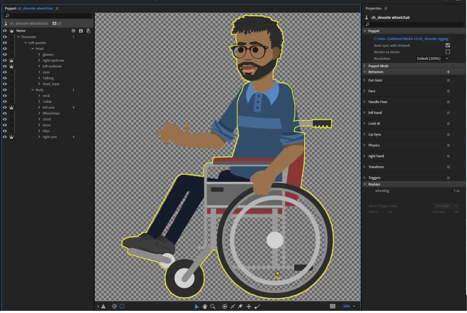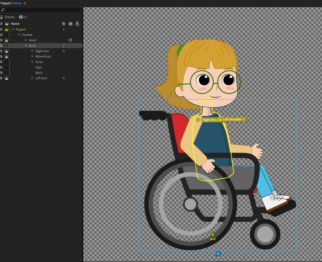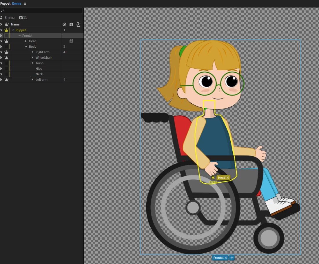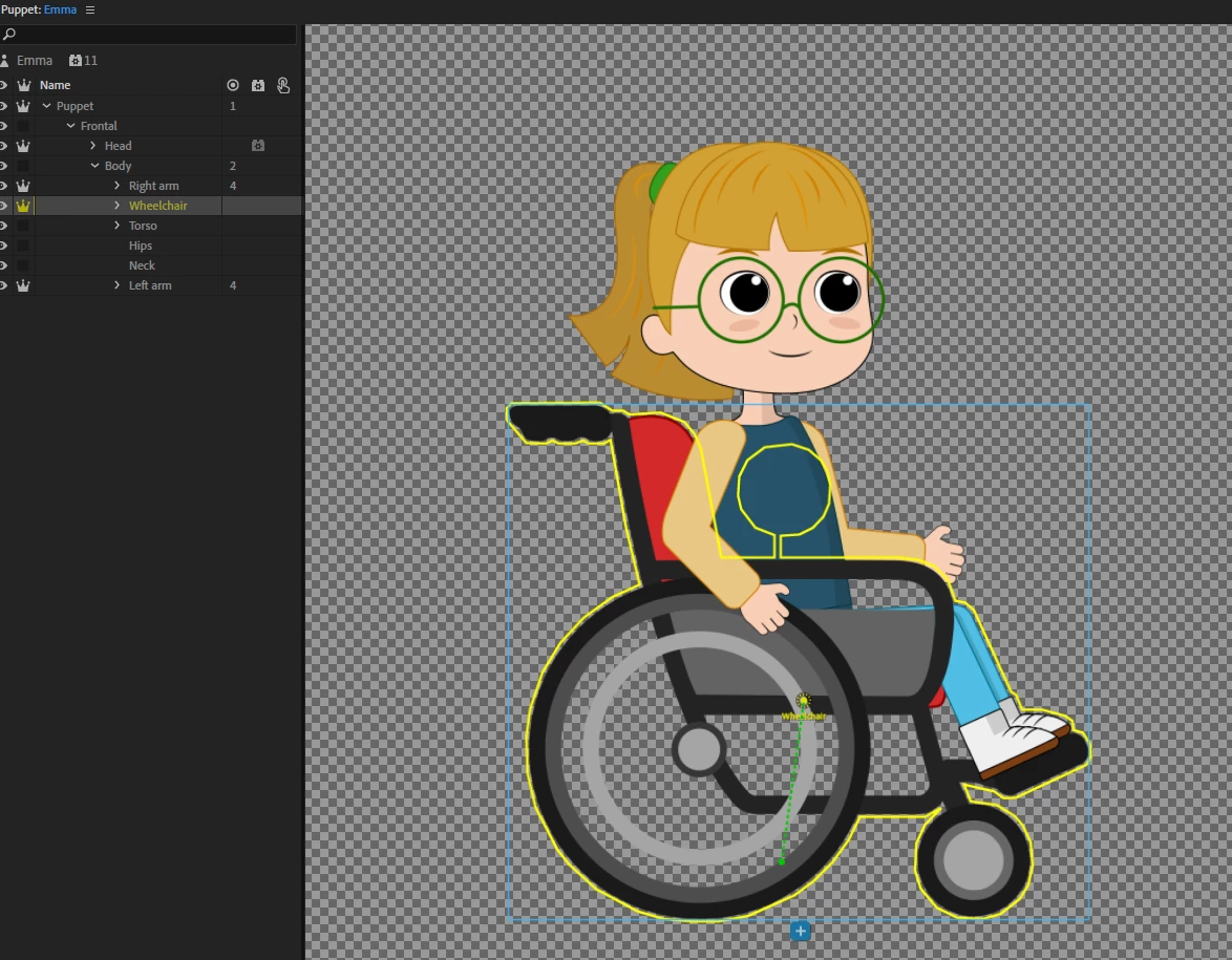 I have rigged a girl in a wheelchair after following a youtube tutorial, however when she pivots, the wheelchair is supposed to keep still and not move with her body movement. Any idea why the wheelchair is not staying fixed?