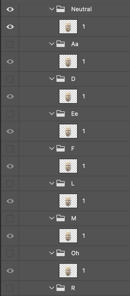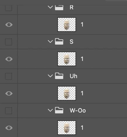 My puppet is set up with each mouth being the entire face. I have the following issues.