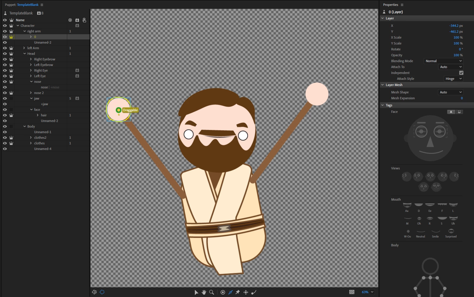 I want my characters arms to essentially be ropes, where it is attached via a hinge to the shoulder and the hand, then I want to make the hand draggable. However, I made the hand independent and when I attach it with the hinge to the arm and I drag it, the hand just detaches from the arm.