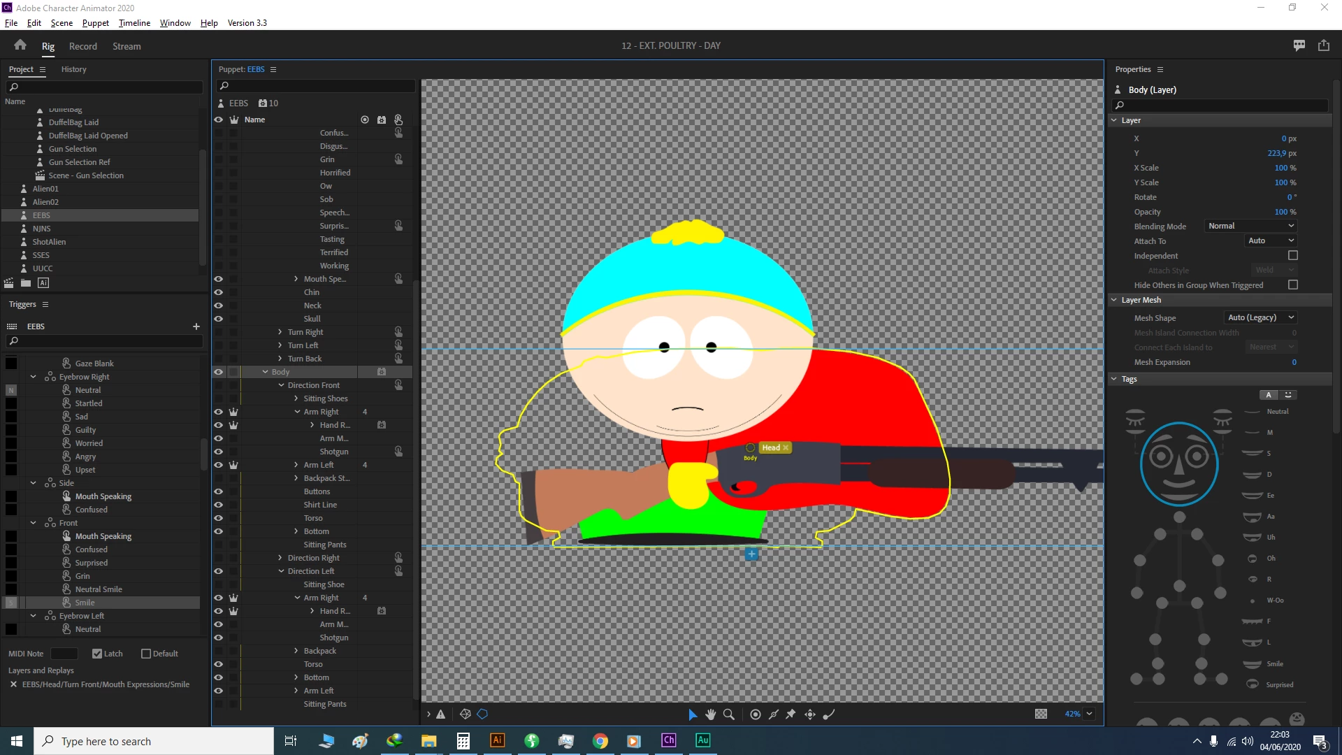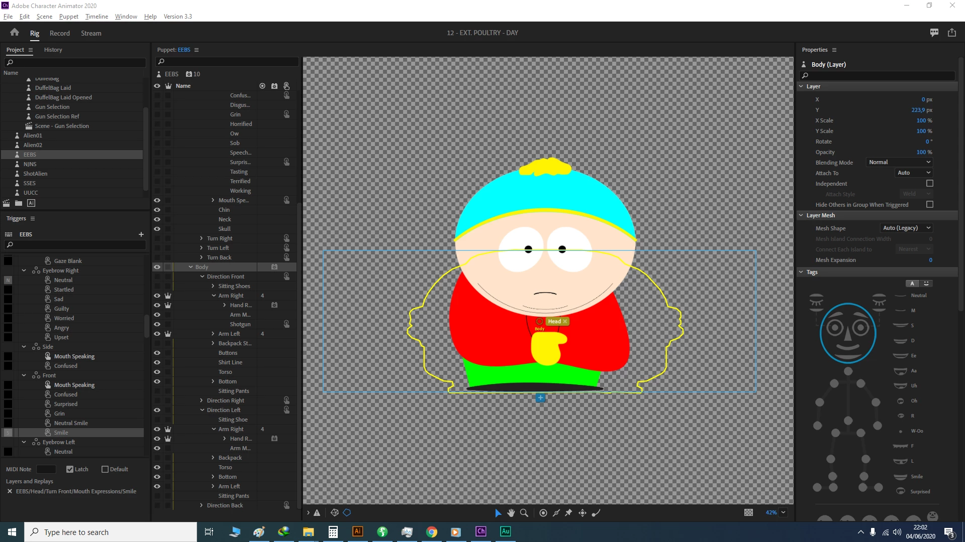 As you can recognize immediately, h̶e̶ ̶i̶s̶ ̶a̶ ̶C̶a̶r̶t̶m̶a̶n̶ ̶r̶i̶p̶-̶o̶f̶f̶ the puppet body is weirdly positioned by Ch. I guess it has something to do with pivot point? But I don't know how to fix it. Please someone help.
