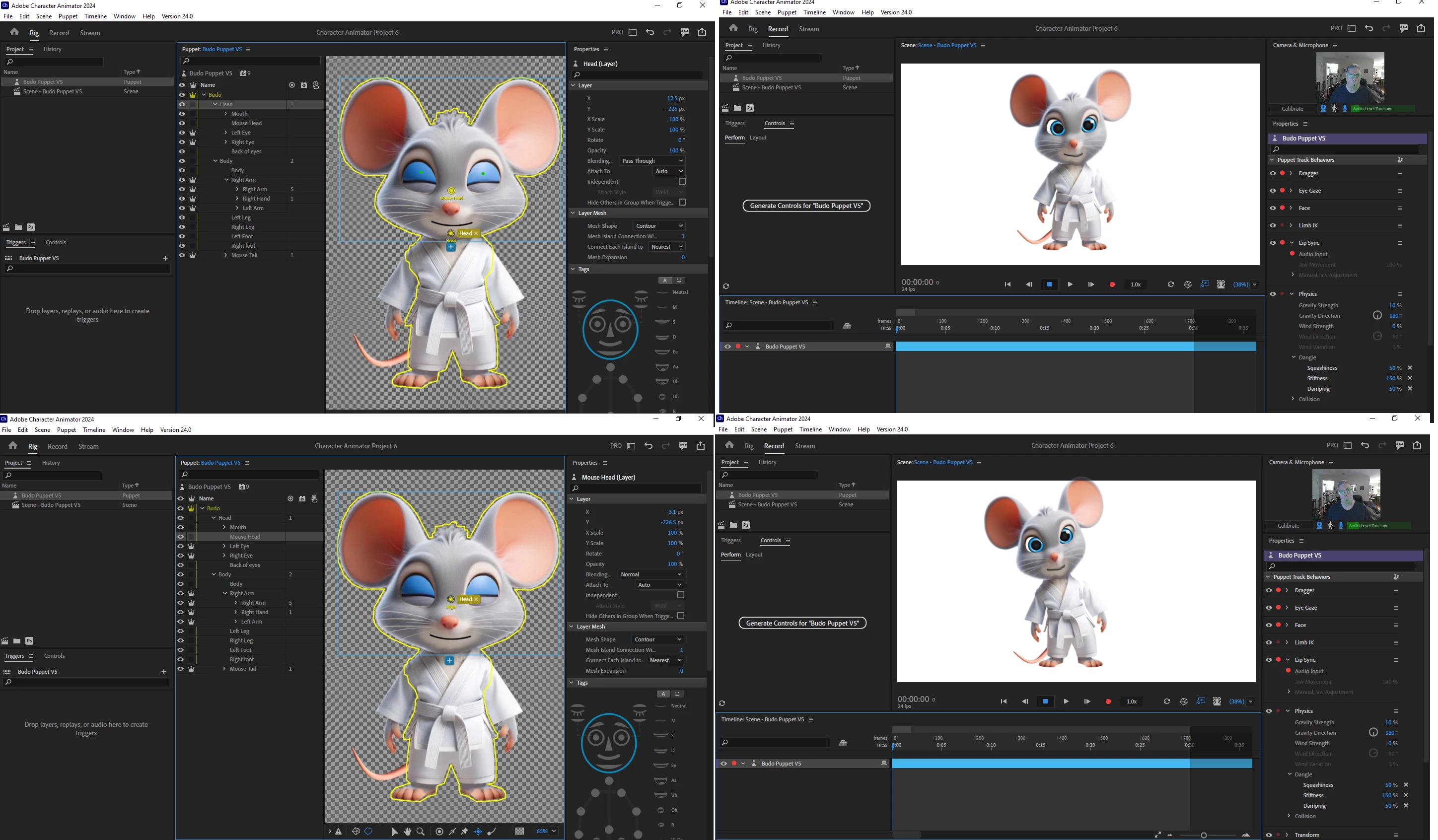 The puppet looks fine BUT when I open my actual jaw wide the characters face warps really weird plus there are some subtle warping going on as I talk. I can't seem to figure out what I am doing wrong.