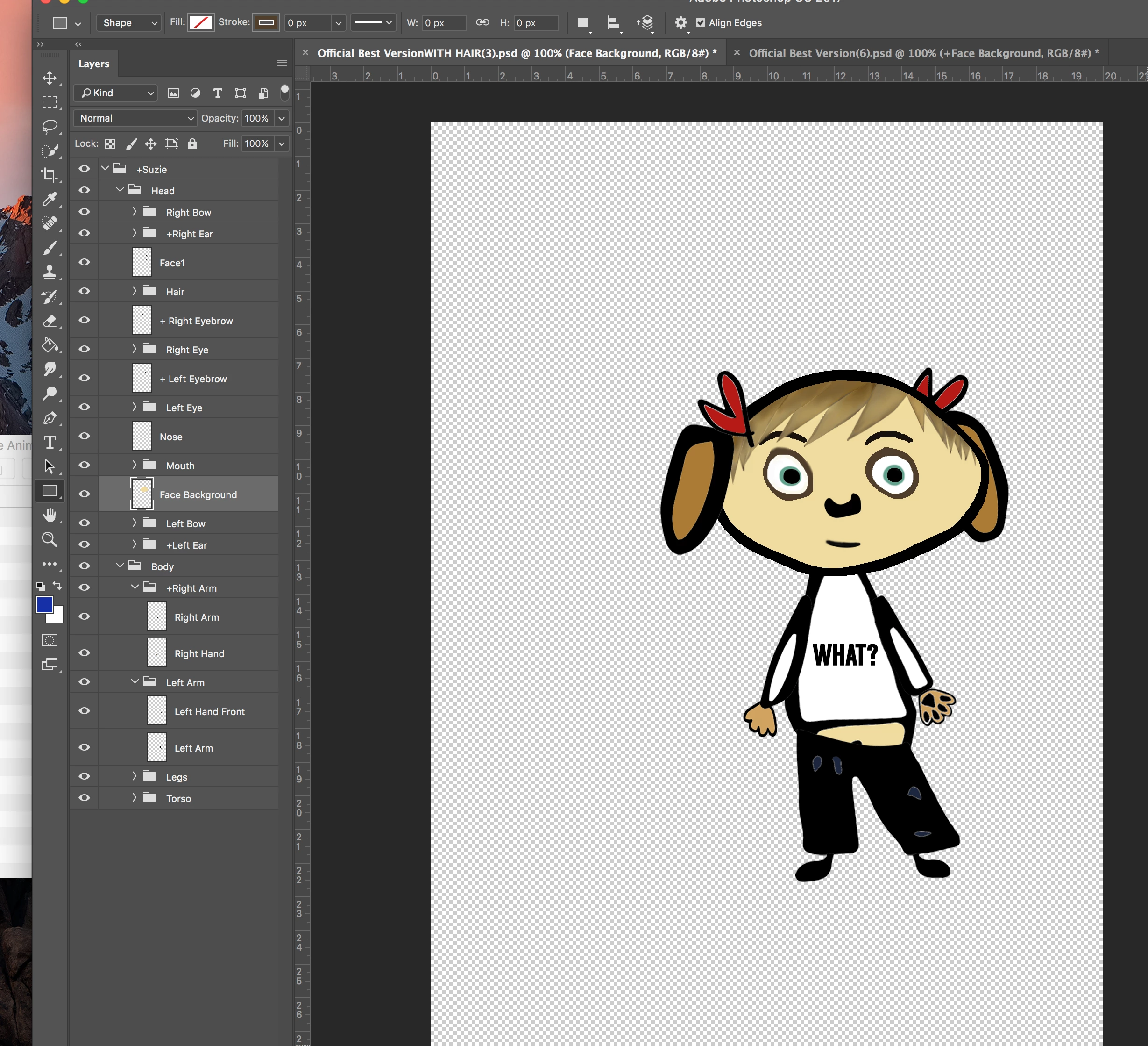 Firstly, my character is warping strangely, especially in the face. I never had this problem before, but I also recently added hair, and in order to make it stay behind the outline of the face, I had to separate the Face Background into separate layers: face background and face outline.