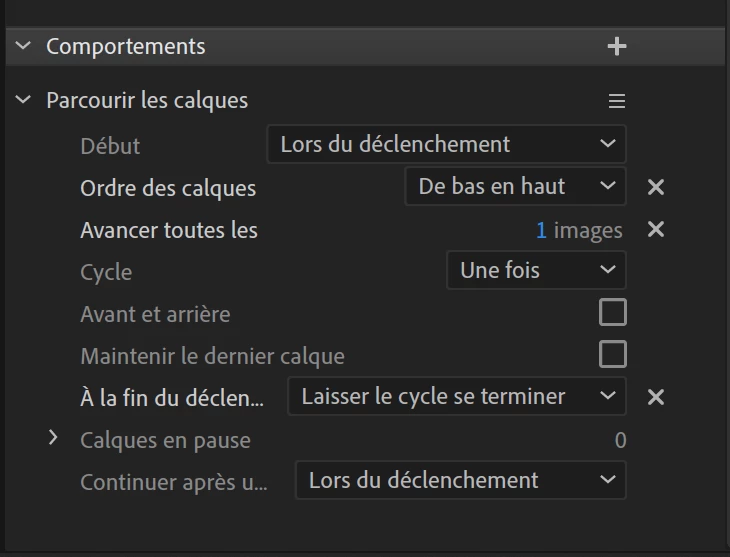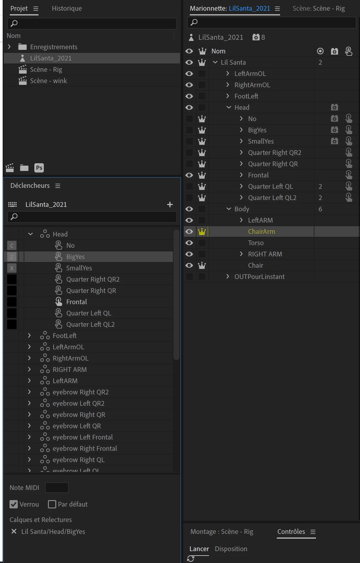When I activate this animation, the head of the puppet disappears and the animation runs smoothly but once the head of the puppet does not come back, I have to press the trigger button a second time to make it reappear. All the Layers cycle added to the head make the same mistake, but the Layers cycle added to the arms work very well