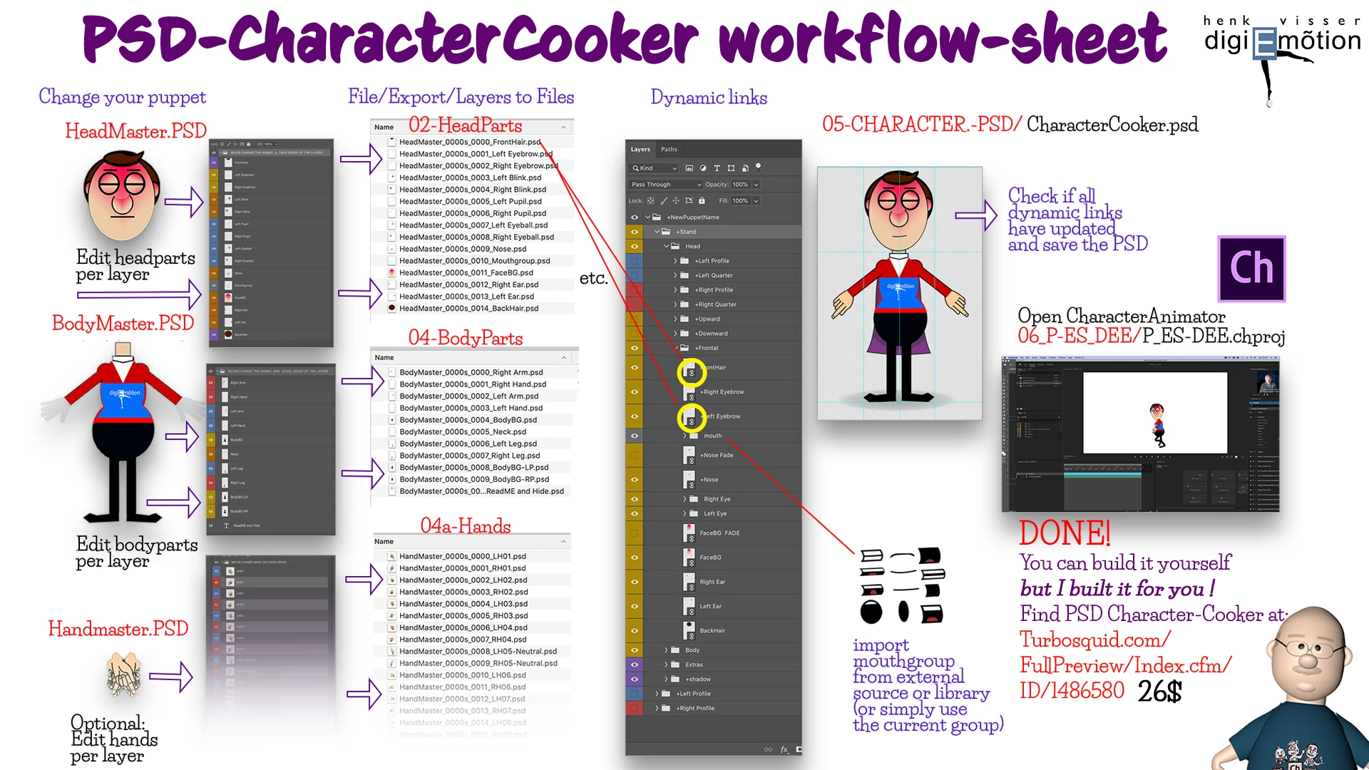 The PSD CharacterCooker workflow sheet.