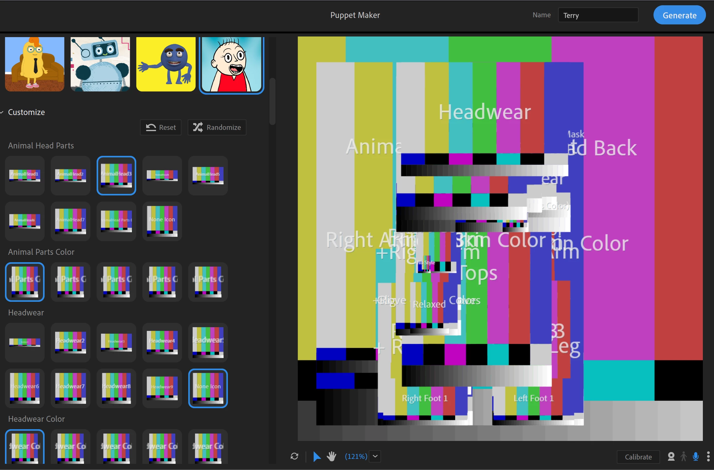 Hi! I wanted to use Terry in the Puppet maker feature. It was working last night. Unfortunately, today it isn't. I tried uninstalling the app and reinstalling it. I also redownloaded Terry in the puppet maker but it still would not load. Please help!