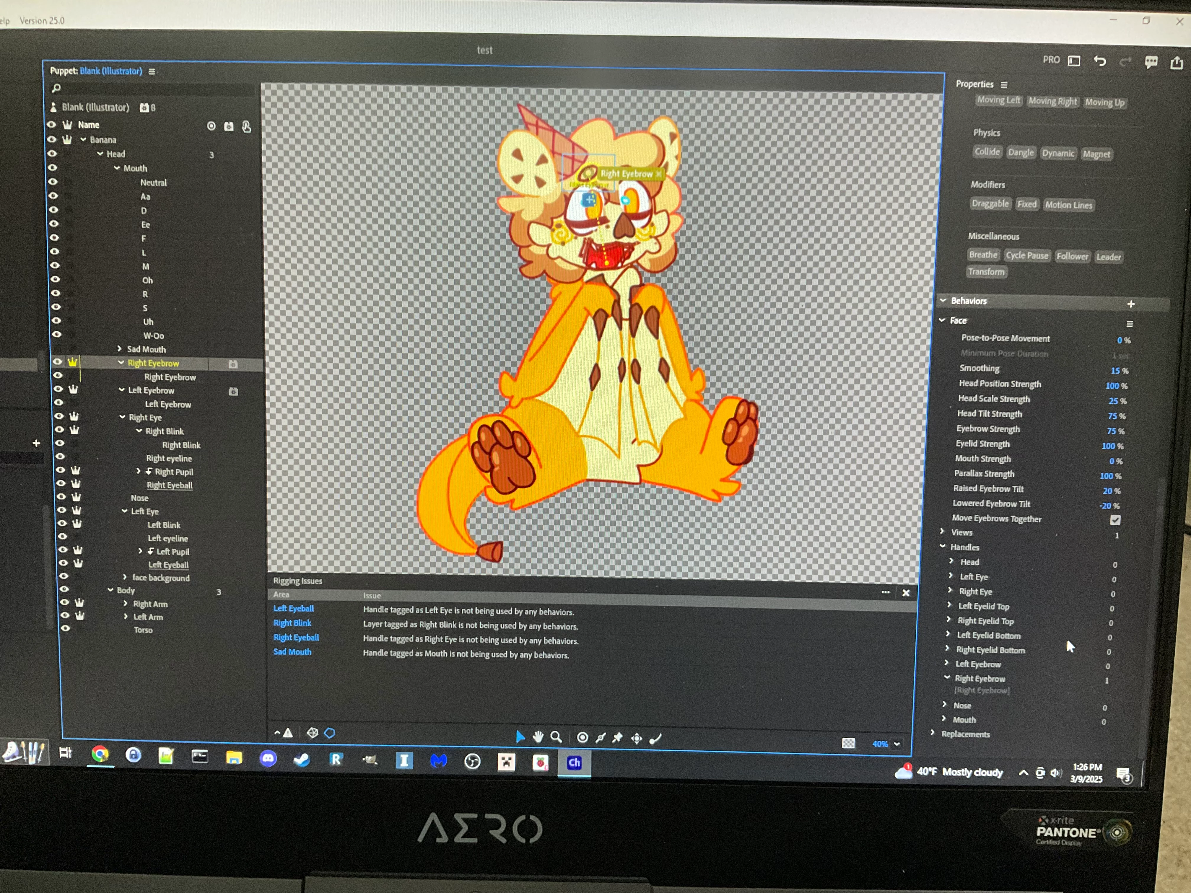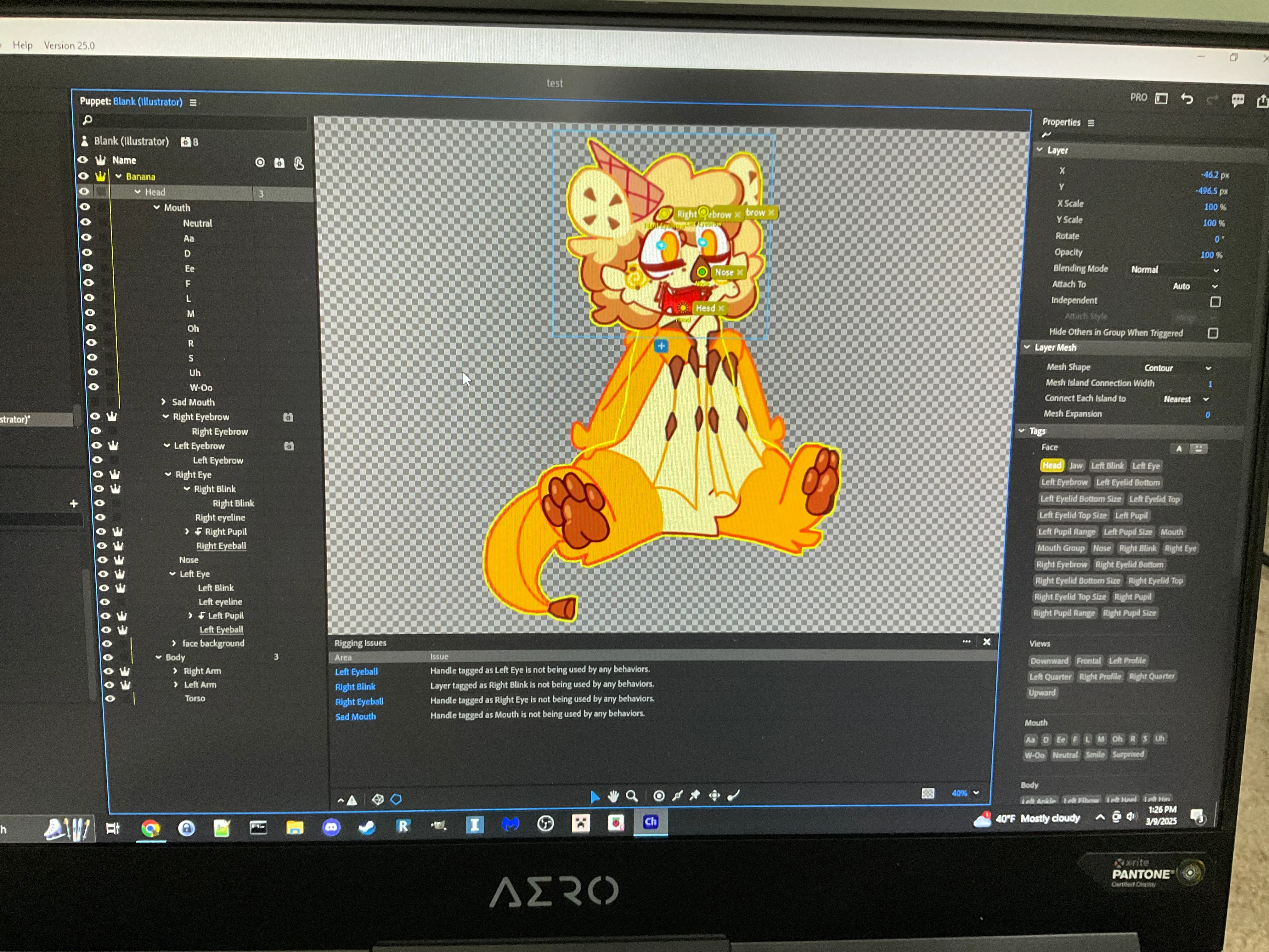 At first, it looks like everything is correct. The only possible problem is that you have the eyebrow layer labled twice which might (and I emphasize might ) confuse the program. Keep the primary layer labled as is and rename the sub layer to something else like "default."