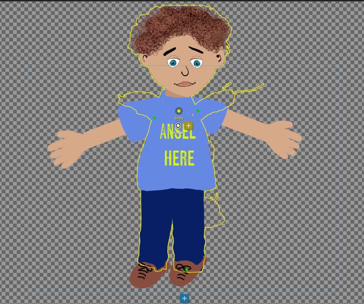 I don't understand this yellow line that surrounds the puppet. Why does it look like this and how do I make it more reflective of the shape of the puppet. Please see the enclosed file