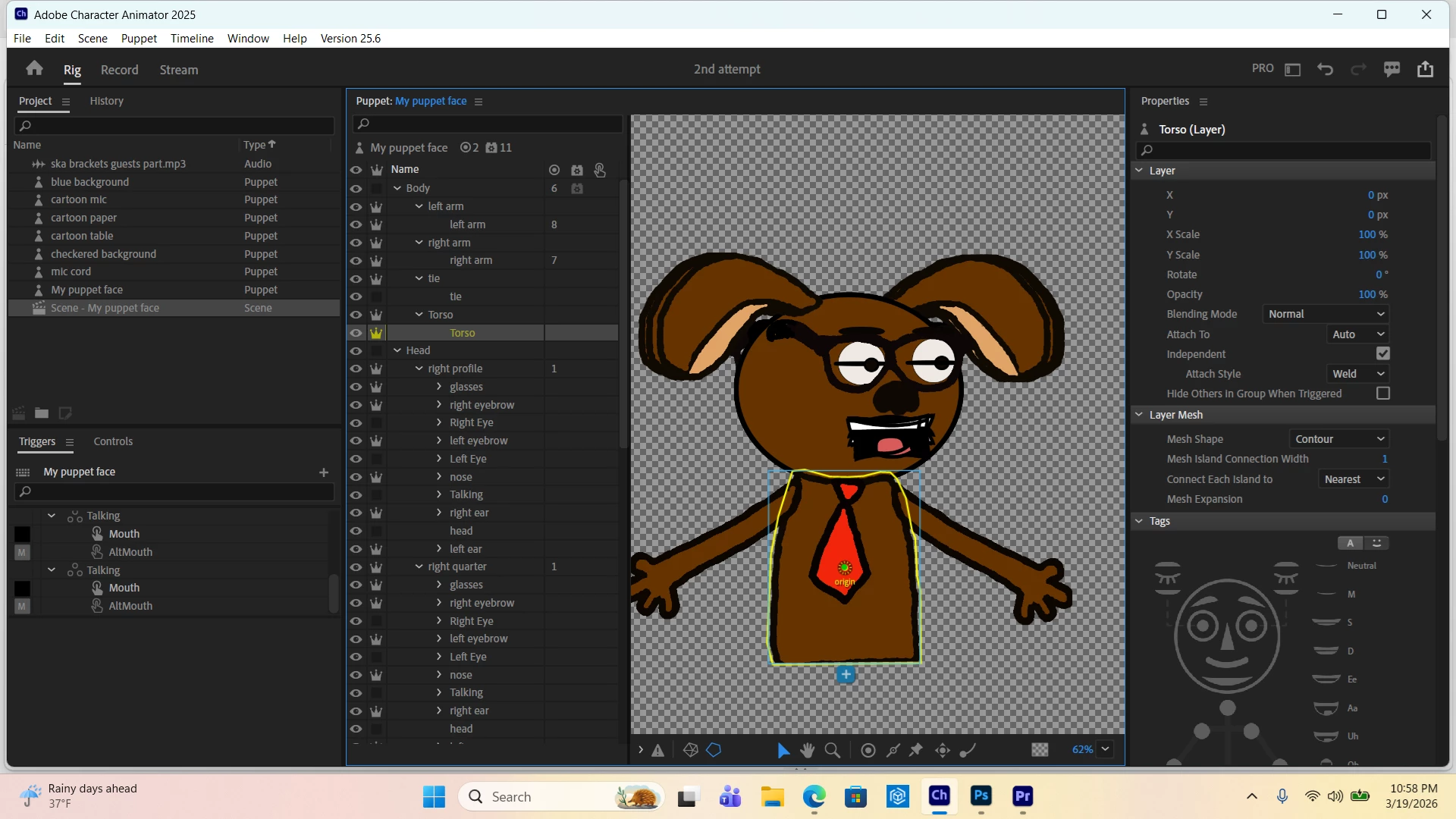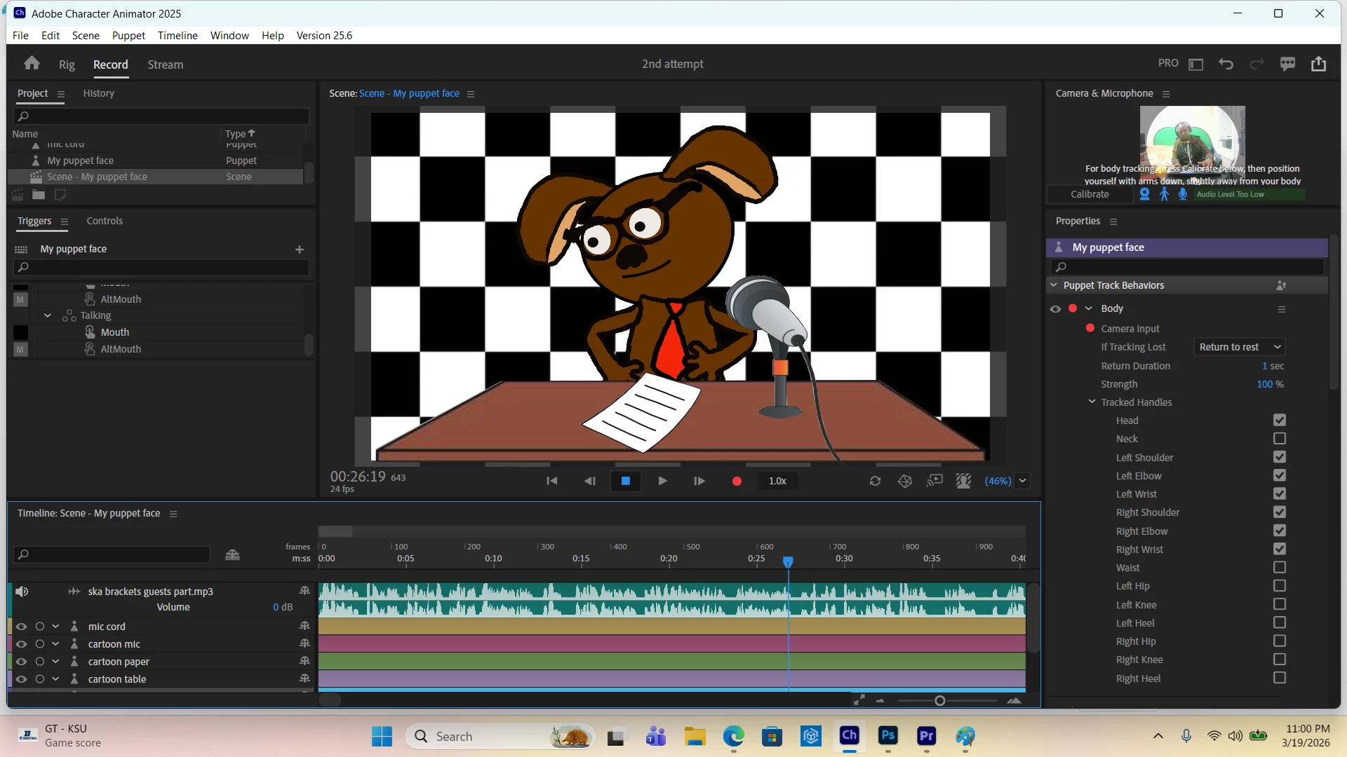 I can’t figure out how to get the torso of my puppet to move when I sway back and forth in the body tracking camera in record mode. The head moves but the body stays still. Please help! I’ve attached an image of my rig settings and how it looks in record mode.