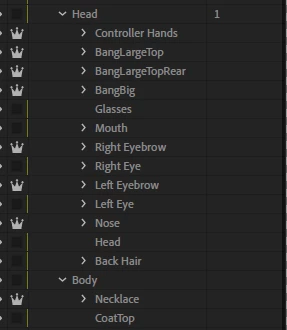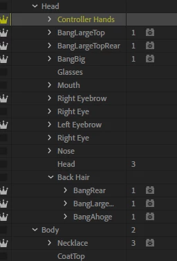 The first image is what my character project looked like before I made some edits (to the +Controller Hands layer, specifically. Character Animator was closed during these edits and when I reload Character Animator, it updates to incorporate my changes to the layers and then just wholesale wipes all my rigging. Nothing changed. No layers were moved or deleted, just edited, but everything is wiped and I have to start all over again because I cannot rollback to an "earlier" original. The PSD is saved as is, so every time I try to do anything, it reverts to the "new" PSD and erases all my past work.