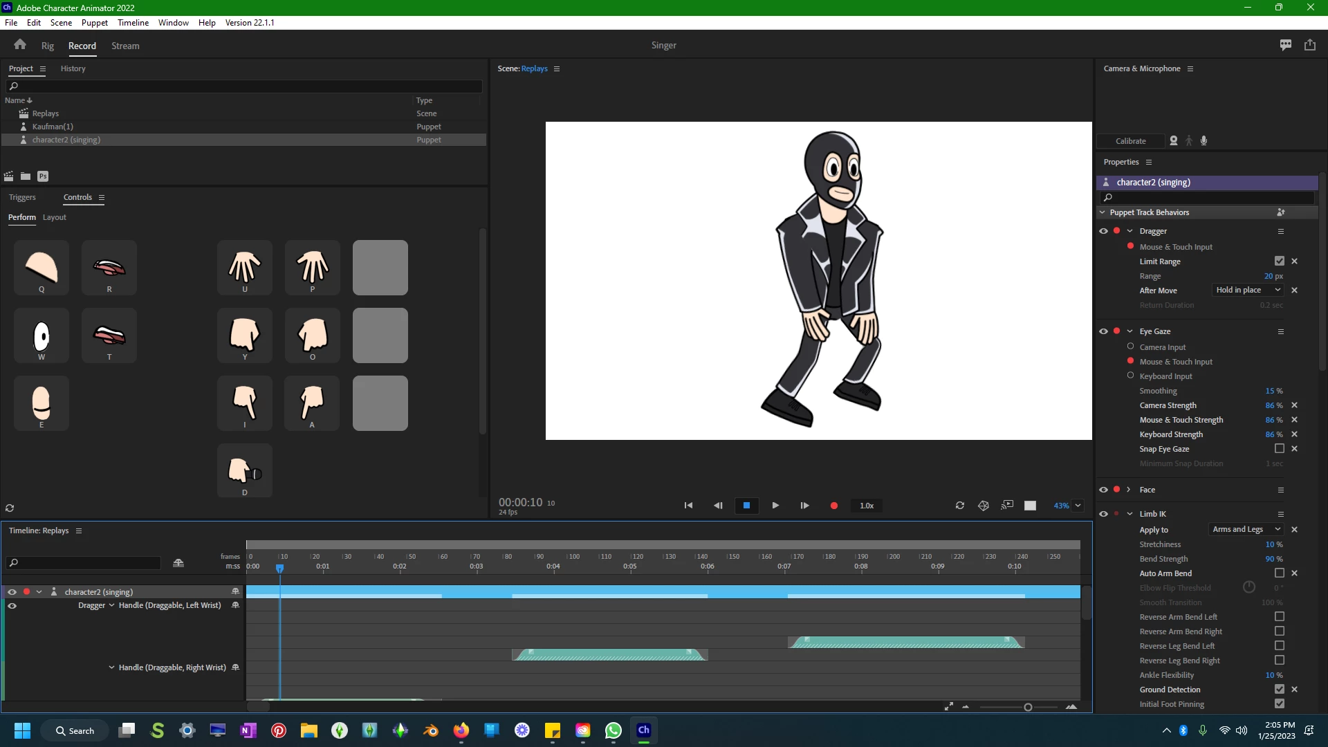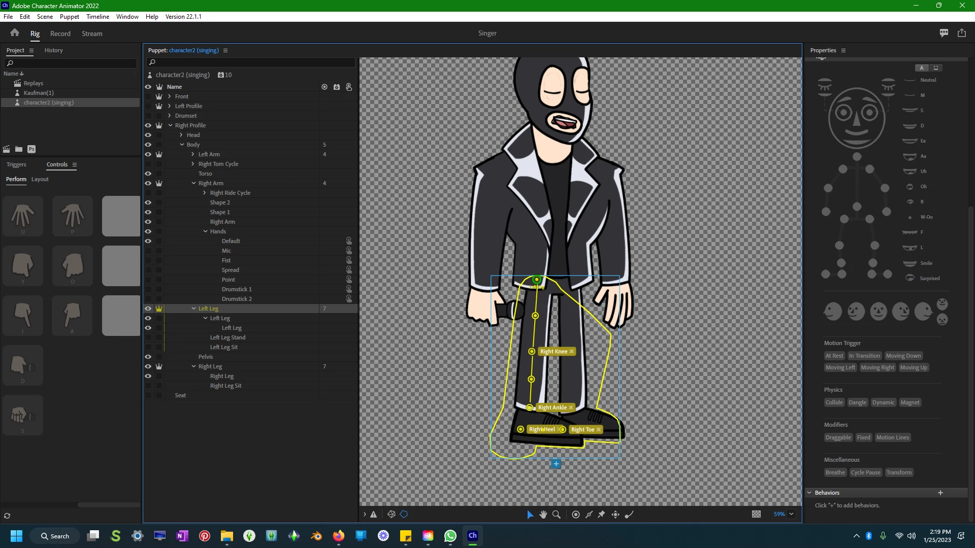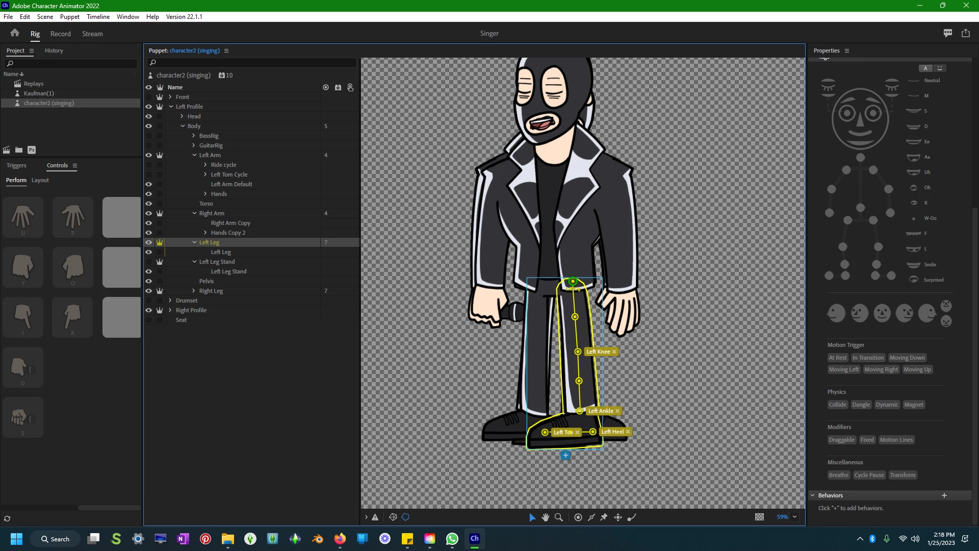 Hi I'm having issues with my character's walk cycle. I have the puppet rigged with the proper views (front, left, and right) but I'm getting a weird issue with the character bending down more when he starts walking to the left. When he faces the right the issue is gone- could this be an issue with handles or the actual walk cycle behavior, and all three views are scaled correctly also. Here are some screen shots of the puppet walking, the rig and the walk cycle parameters. Any help would be GREATLY appreciated
