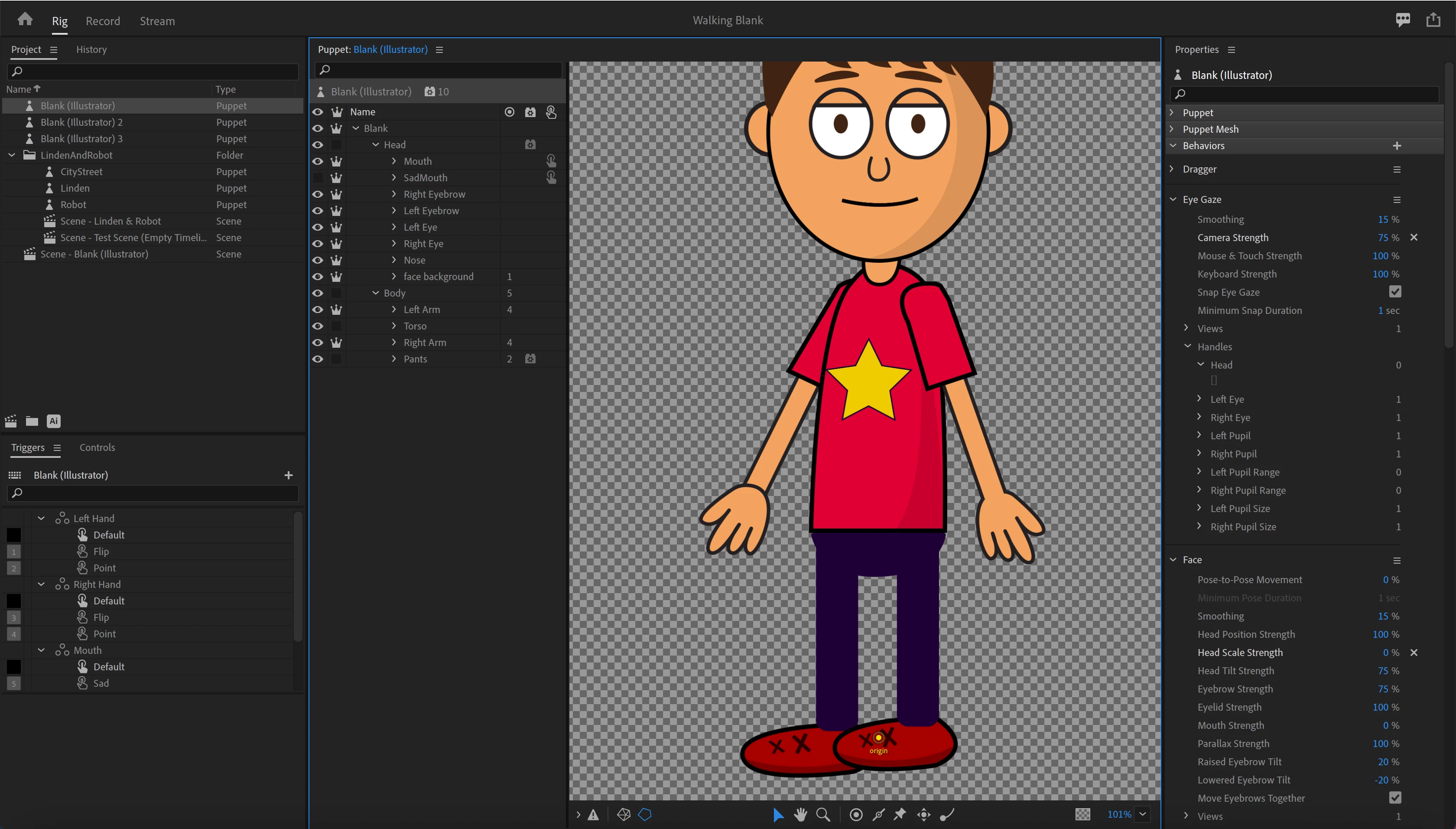 Hi, I'm new to this & need help. I took the "Blank" character offered in adobe & changed its features to become my character. I did this because it was recommended by the Okay Samurai as the best place to start if you are new to animating.