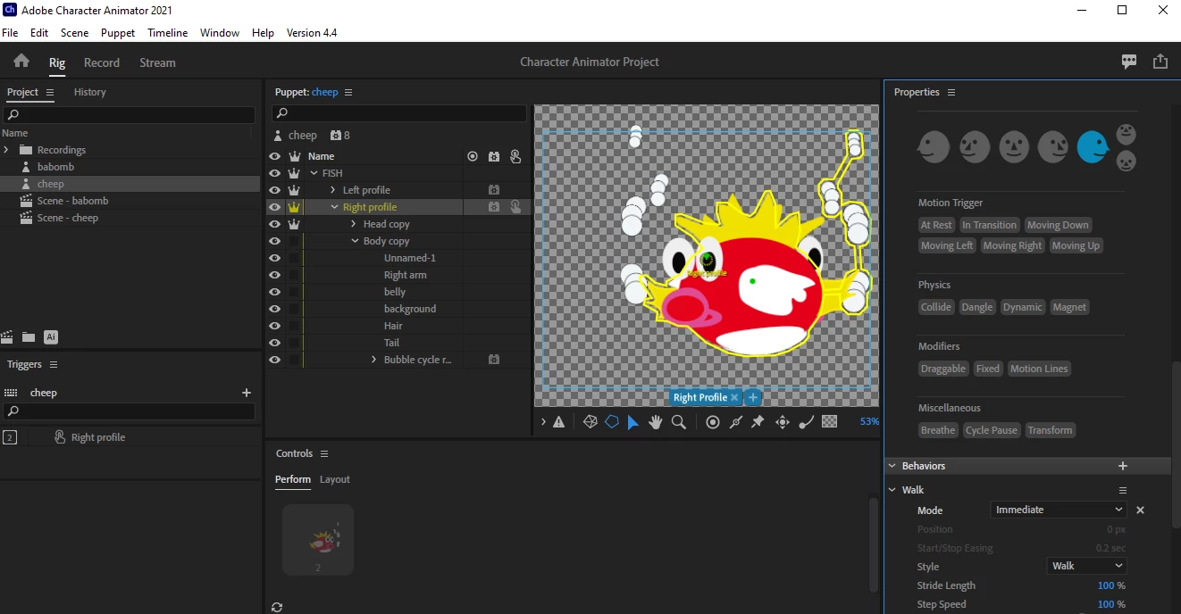 I added the left and right profile of my character. The left one is started automatically.