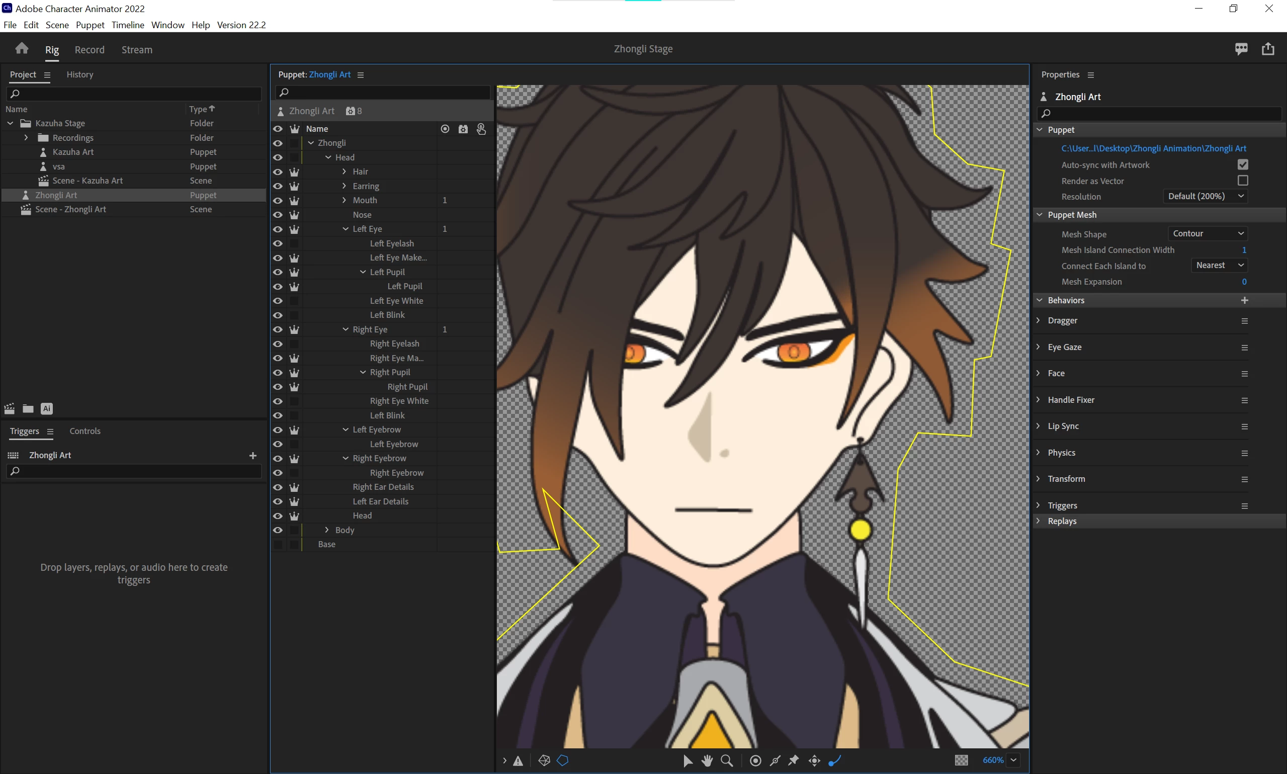 Hi all! I'm having a little trouble getting my Zhongli character profile's eyes to track. When I look to the side, the entire eye appears to squish up or move the head, depending on what I tag as independent. I can DM the files to anyone who can help! 🙂