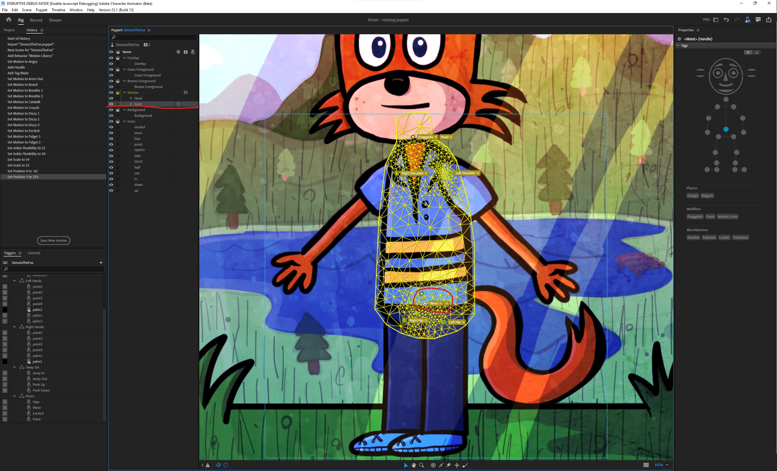 Scene screen disappears when resizing puppet