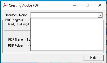 A client is using a program I wrote and after updating to the latest version of Adobe they can no longer print. What happens is in the "Creating Adobe PDF" form appears, but it never progresses. Also worth noting is that the "Document Name" combobox is blank.