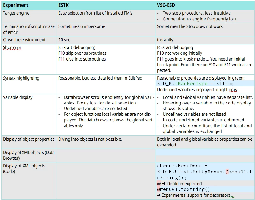 FrameMaker scripters became unhappy with the current ESTK implementation - for may scripts it takes a long time to step from line to line (the Data Browser seems to stay in background even if not visible). Also closing a script window may take 1/2 minute... My tests so far with ESD are very positive.
