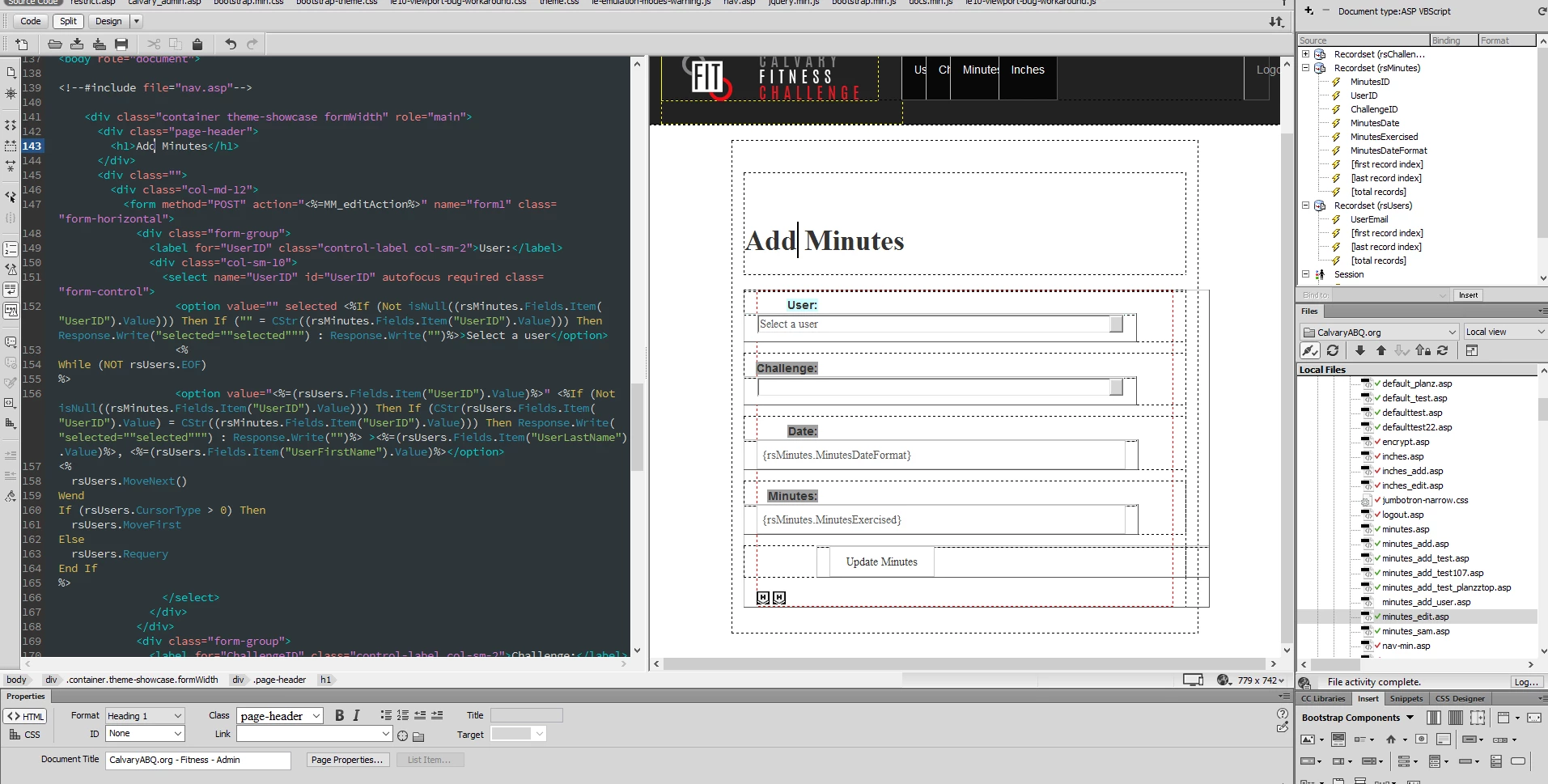I am using dreamweaver to create a fitness challenge site. Essentially, whoever has worked out the most minutes will win. The login page will direct users to the next page where the users can add how many minutes they worked out for that day.