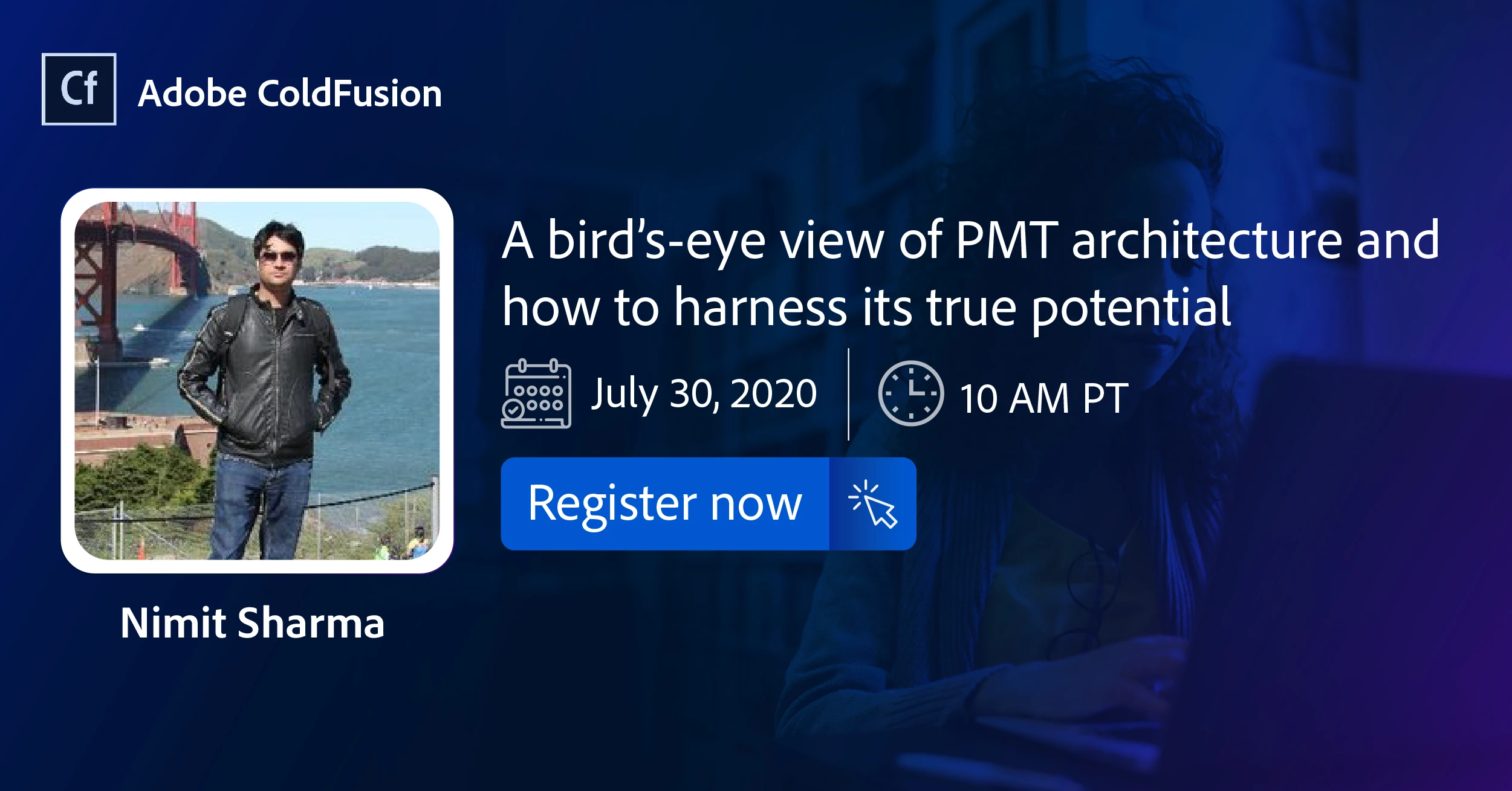 Nimit Sharma from the ColdFusion engineering team will take you into a journey of PMT and how PMT can help you monitor your servers.