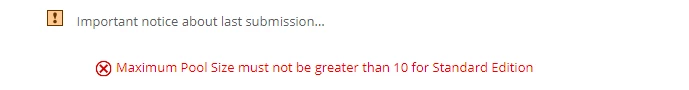 I suspect CF Administrator is displaying the wrong error message and this is not related to Maximum Pool Size. That aside is there anyway to increase the POST limit beyond 100 with Standard Edition? If not, will upgrading our license to Enterprise edition remove this limit?
