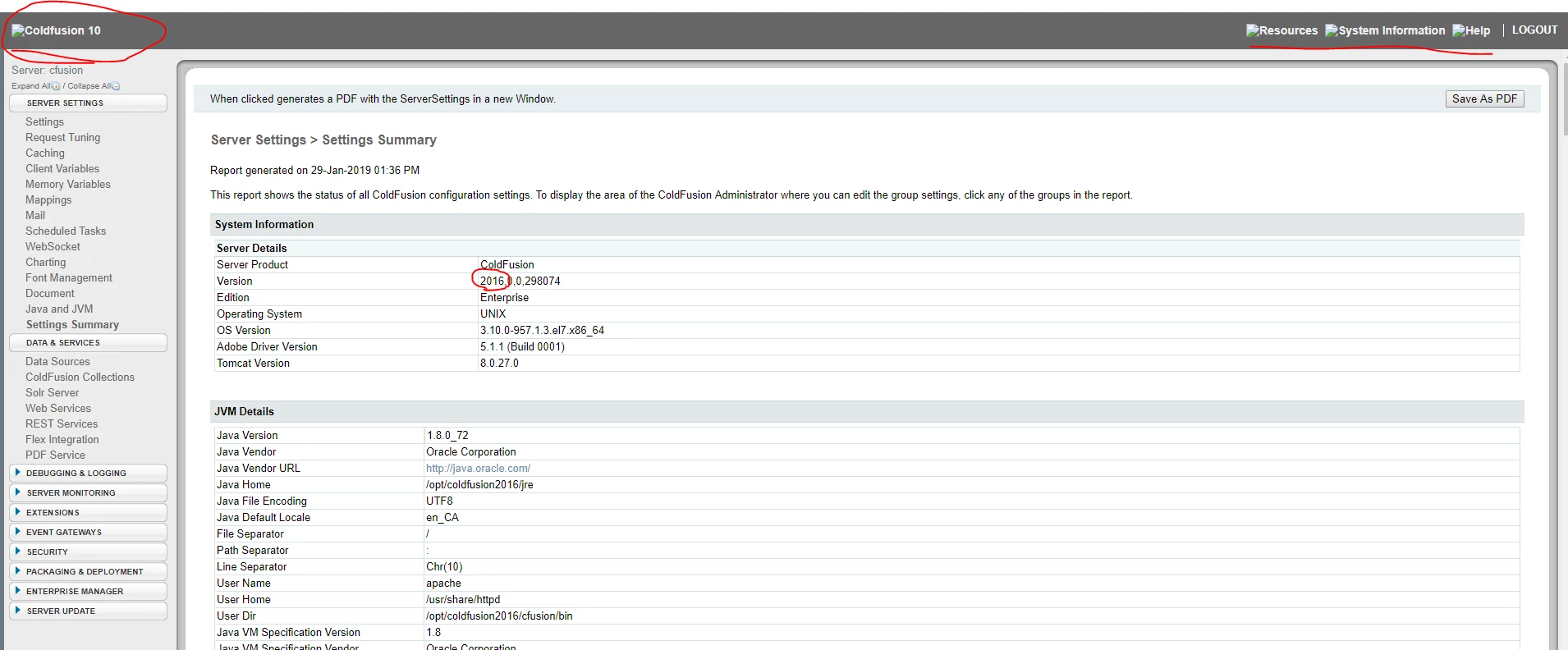 I recently upgraded my web application from Coldfusion 9 to Coldfusion 2016. Right now the two version coexist on the server (RED HAT). I have already shut down cf9 and removed all the old connectors. CF2016 can successfully talking to Apache and our web application seems working perfectly with cf2016. However when I trying to access the Admin Page through https://my_web_application_url/CFIDE/administrator/index.cfm, the login page still shows cf9; after logged in, the logo at the upper left comer shows cf10; in the setting summery actually shows version 2016. The screenshots were attached below. Any help would be appreciated!