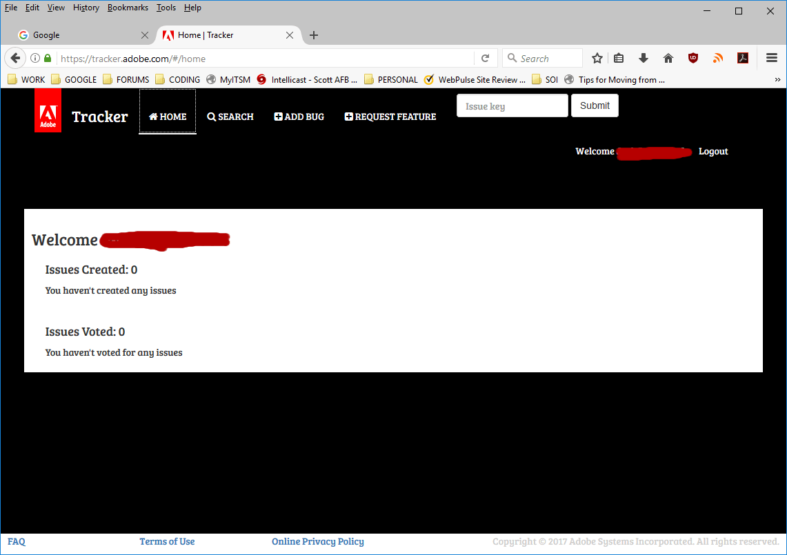 I logged on to Adobe Tracker, and the home screen shows that I have not submitted any issues, nor voted on any issues. I have several of each. Where did they go?