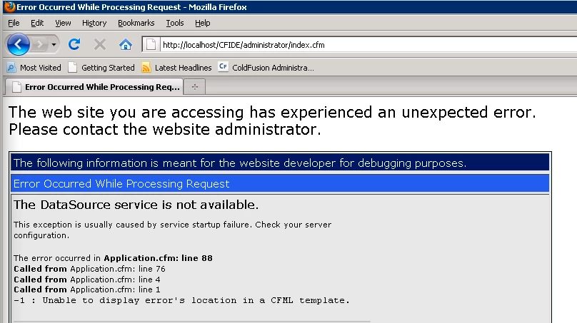I upgraded a few of our dev and staging servers from 9.0 to the latest 9.0.1 update. For the most part everything went fine except on a couple servers, I can't get into the CF admin. It's giving the above error saying the datasource is not available.