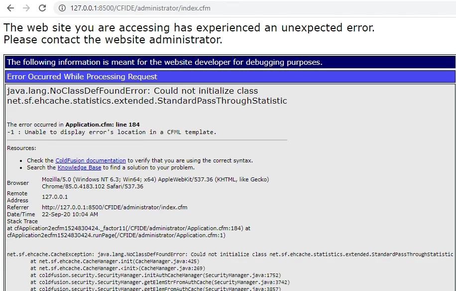 Today, for hte first time, the CFIDE administration page showed a CF error dump.