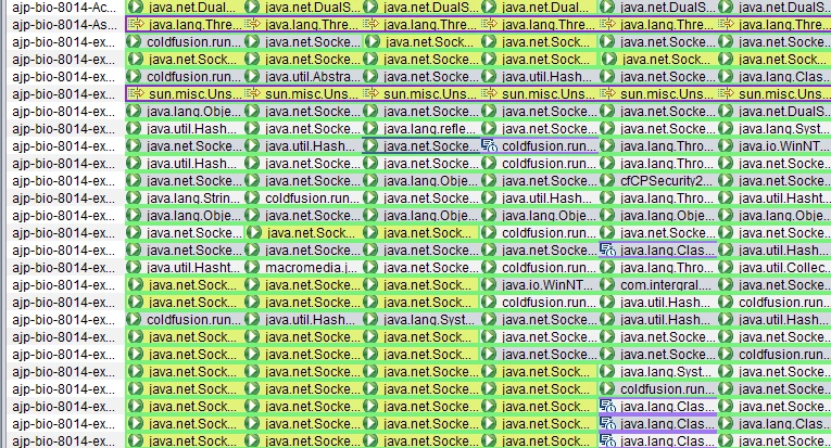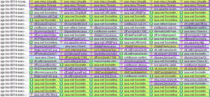 The top of the stack traces are all similar - our CF code followed by some Java code. Nothing to indicate what the condition (object?) is that we are waiting on.