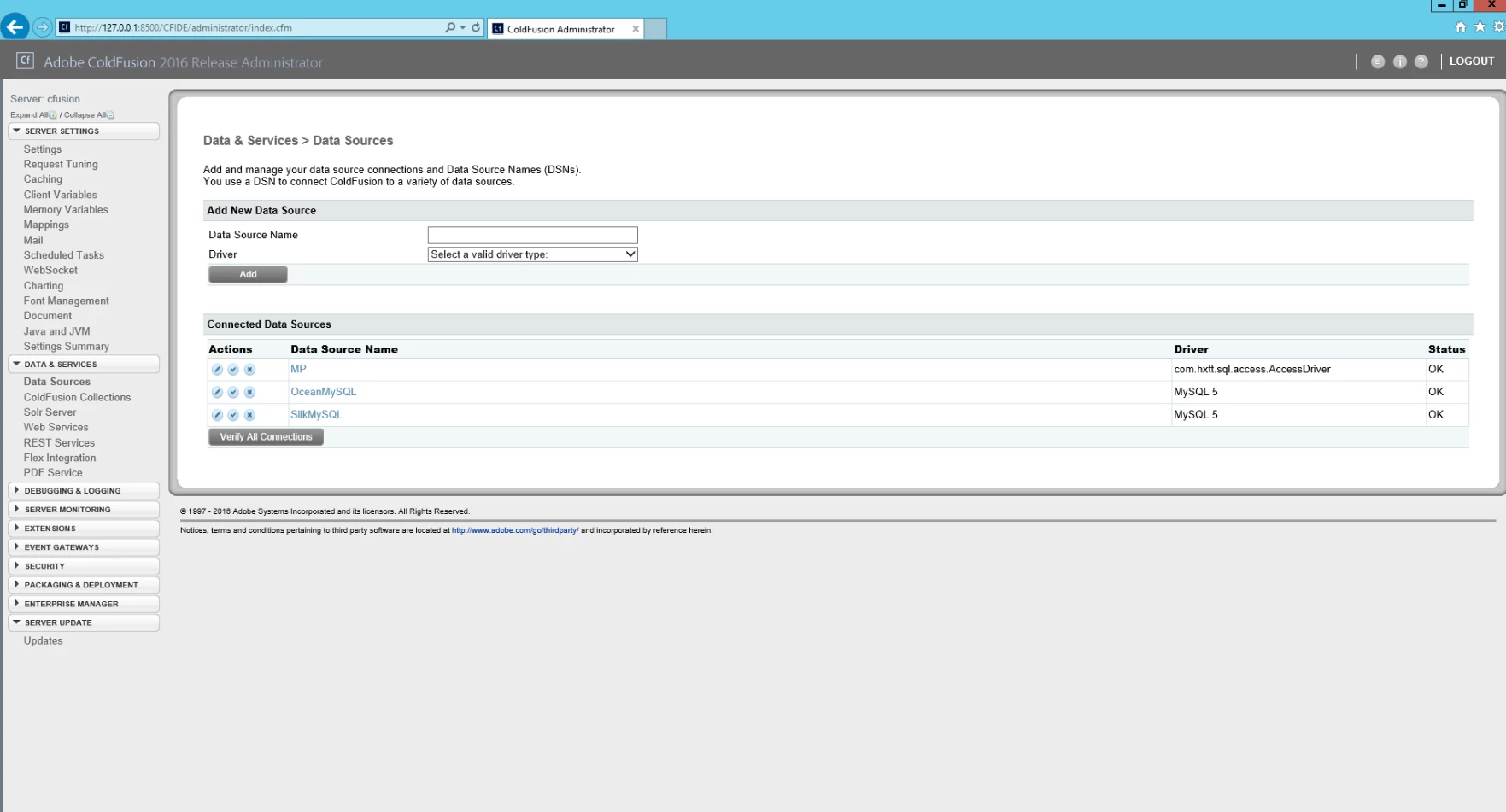 Access datasource does still work with Coldfusion version 11.