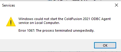 CF2021 ODBC Agent & Server Not Starting after applying update 19