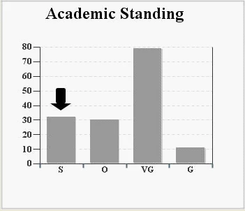 I have a graphing routine that charts with a grade description as the item column and the count for each as the value column, I am using cfchart and cfchartseries. I am using a .json file for the styling. A graph is produced for each student, with an arrow (using Zingchart labels) pointing to the students grade. I use cffile to write the chart to a .jpg.