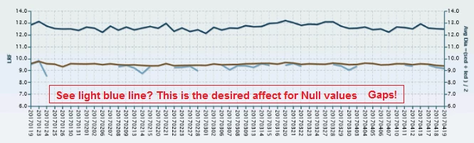 I have a SQL query (created by Oracle DB) that creates multiple cfchartseries using date as the column item and a number for the value. My issue is there are null values for the value field but I need it to plot