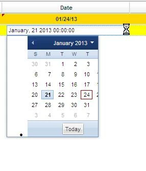 I am using Cold Fusion 10. I have a grid that has a date field. I am using the popup calendar so people can edit the date. In Chrome browser, everything looks fine. In Explorer however, the calendar does pop up, but it is off centered within the popup window such that the last columns (Fri & Sat) are not visible. The left portion of the popup is just blank. It is possible to select a date and arrow over to the right which brings the full calendar into view. See image below.