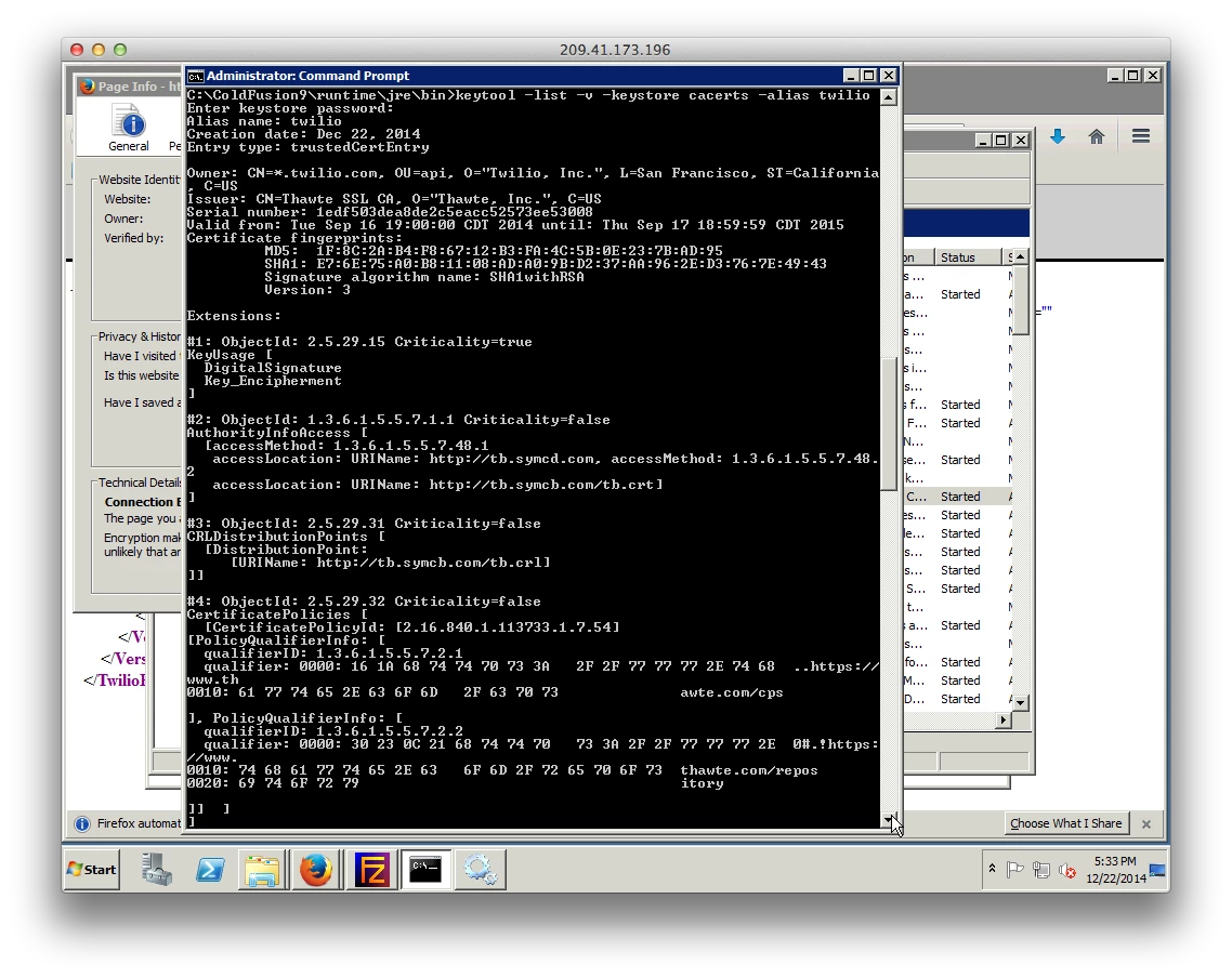 So I went and imported the the certificate into the cacert keystore. Here it is listed: