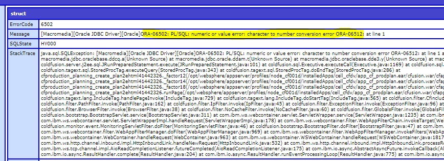 We are going thru upgrade from CF10 to CF18. The same code used to call oracle stored procedure in CF10 fails in CF2018. I am not sure what may have changed with this tag but the error message doesn't make sense to me based on values I am passing. I can confirm the store procedure is working fine.