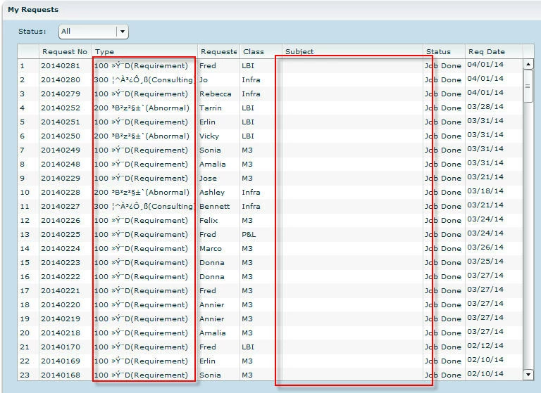 We have a repost that can enter, modify and view our SRM that has Chinese Character display request. Chinese character was display without problem when the system in the old server. which look like following.