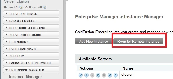 Go ahead and Register the remote instance (test2) in the ColdFusion Administrator . Create a cluster and add both the instances (test1 and test2).