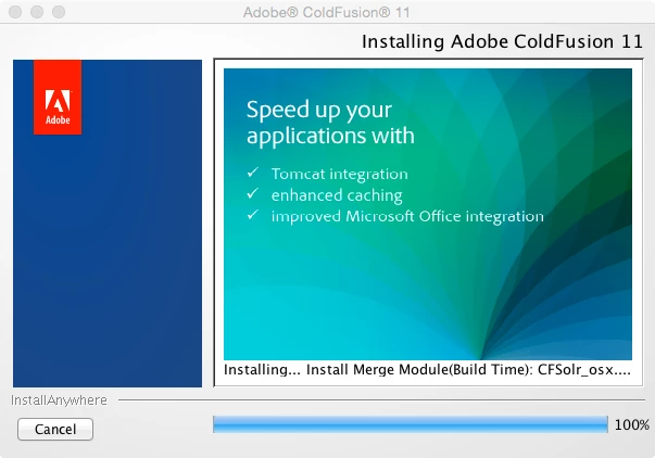 I'm trying to install ColdFusion 11 on a fresh install of OS X 10.10.1 with Apache. The installer gets to 100% with the message