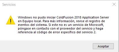 AArath24316987ekh8ParticipantForum|Forum|3 years agoMay 4, 2022QuestionColdFusion 2018 no inicia.Forum|Forum|3 years agoMay 4, 20221 reply169 viewsHola, alguien sabe como resolver el problema de Coldfusion 2018 no inicia.Al momento de iniciar Coldfsuion 2018 application server me manda un mensaje que menciona que no se pudo iniciar en e equipo local. Ya detuve los demas servidores y aun asi sigue sin iniciarlo.