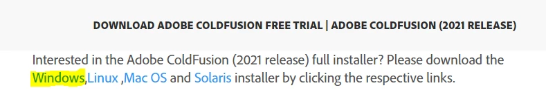 I don't see a windows install file for coldfusion 2021, but supported platforms says "All"