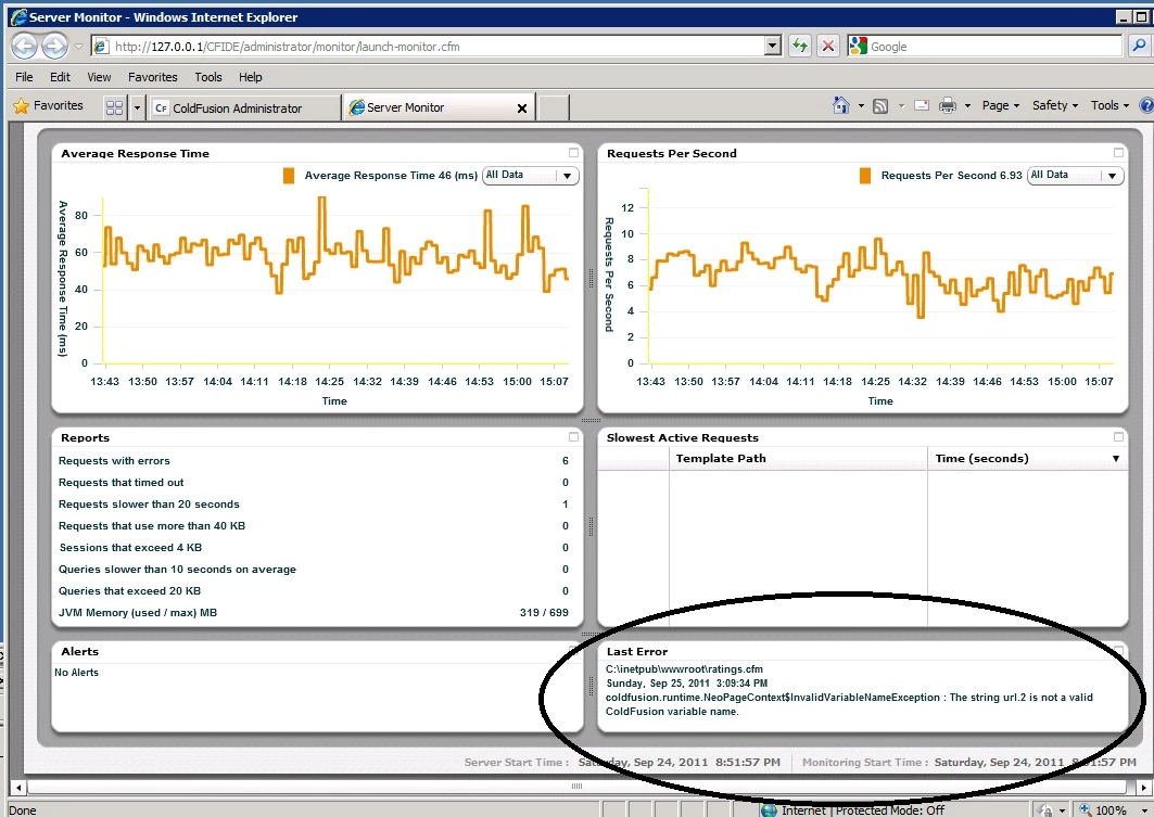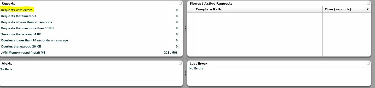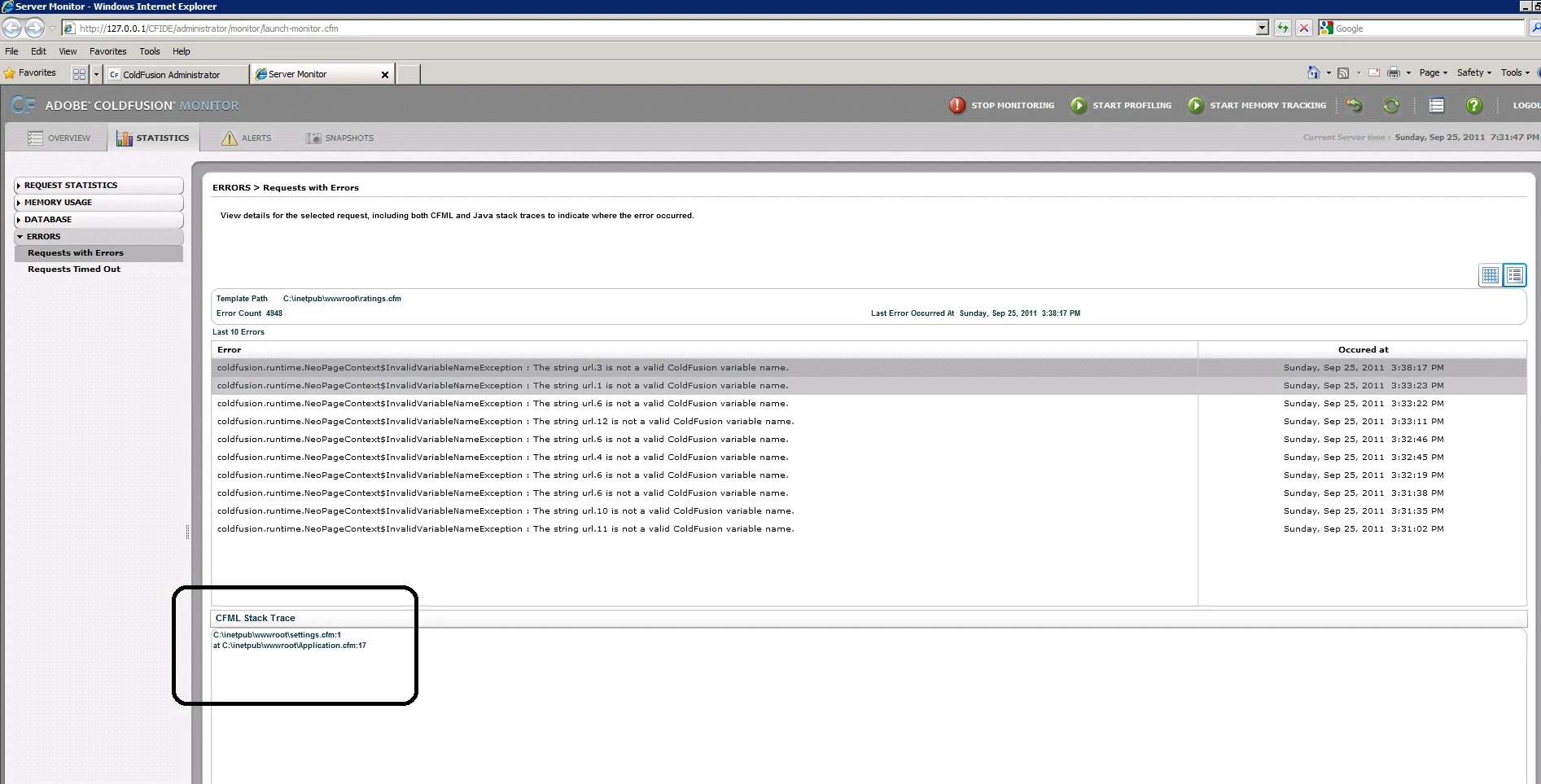 Coldfusion 9 Server Monitoring - Can't find "Last Error" log
