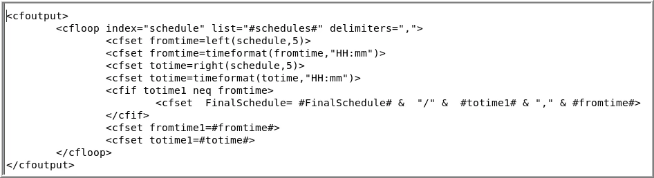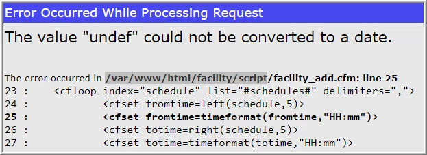 1) Output the value of that fromtime variable (using cfoutput or cfdump), putting it before the bold line. It seems it's not going to look like the timeFormat function expects.